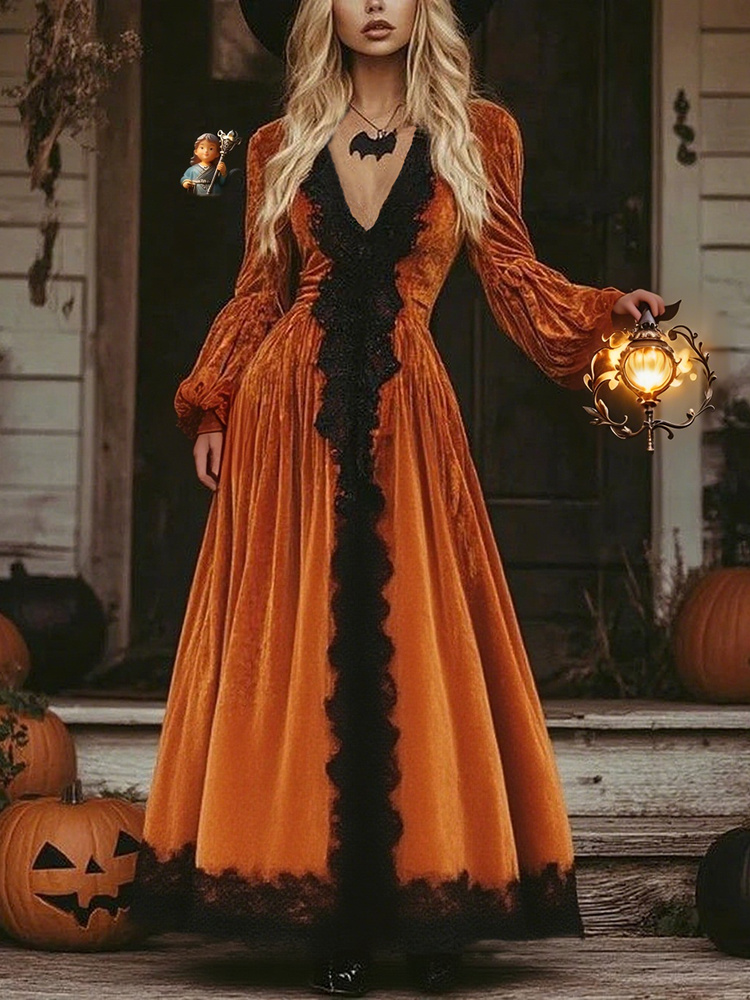 Women's Classic Halloween Art Comfy Velvet Maxi Dress