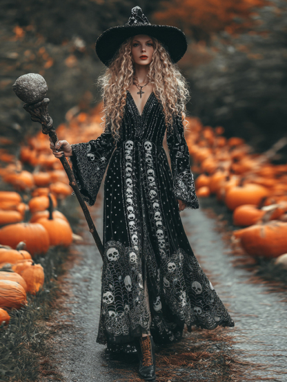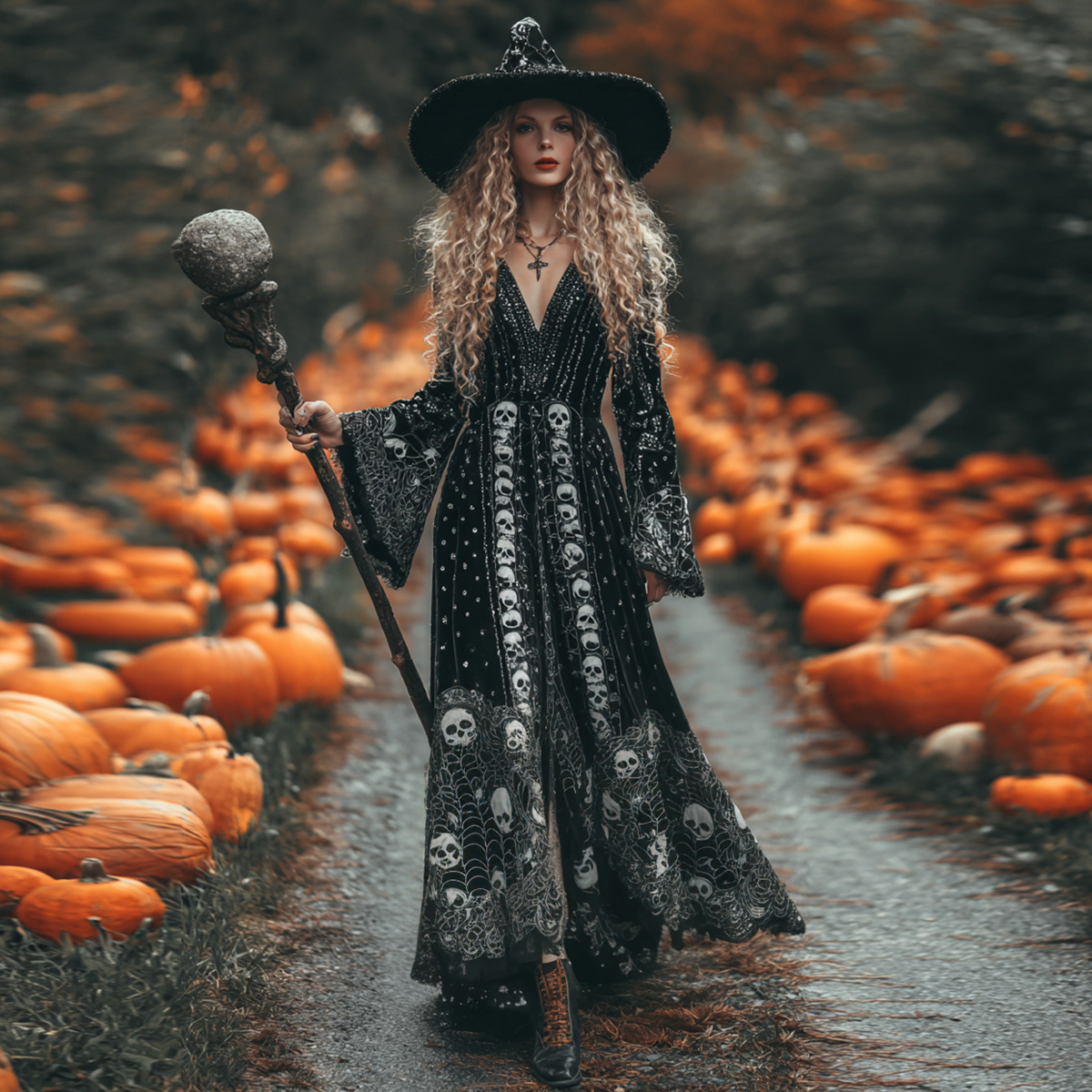 Women's Classic Skull And Spider Web Halloween Art Comfy Velvet Maxi Dress