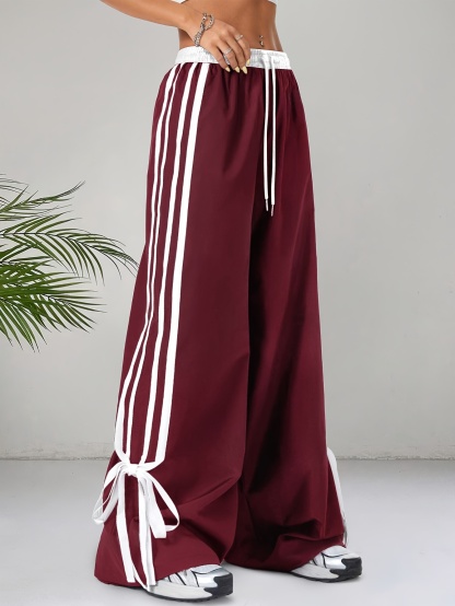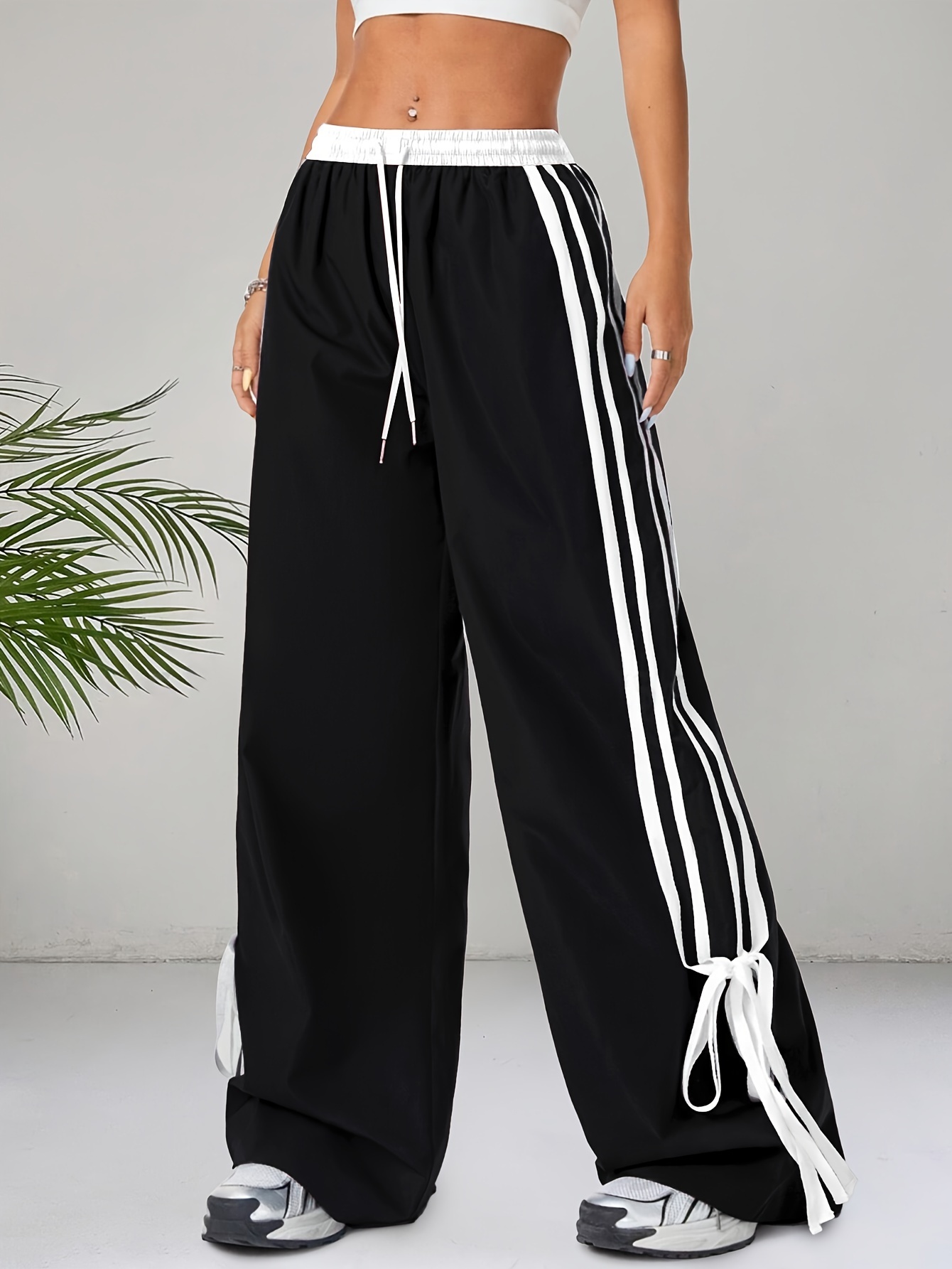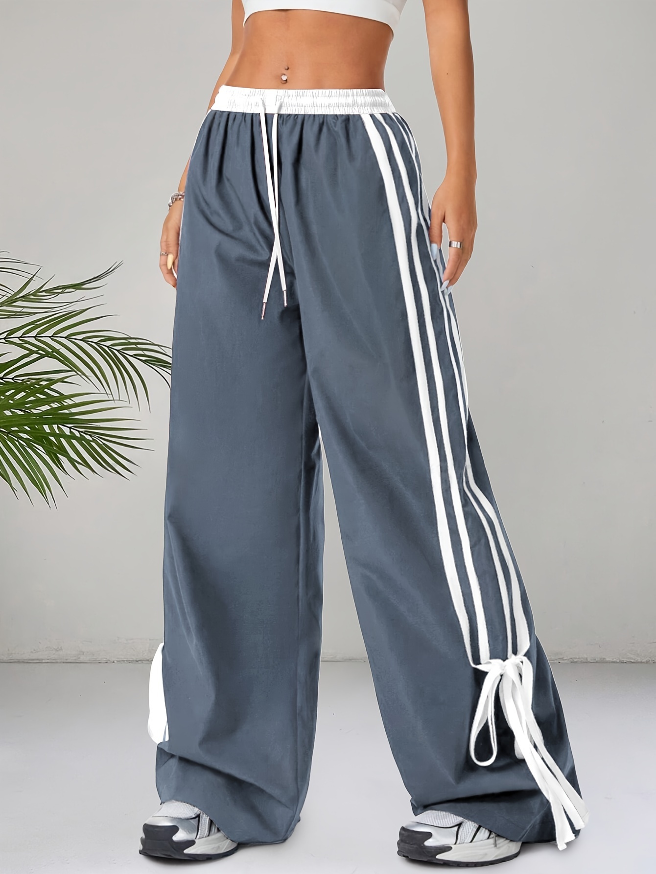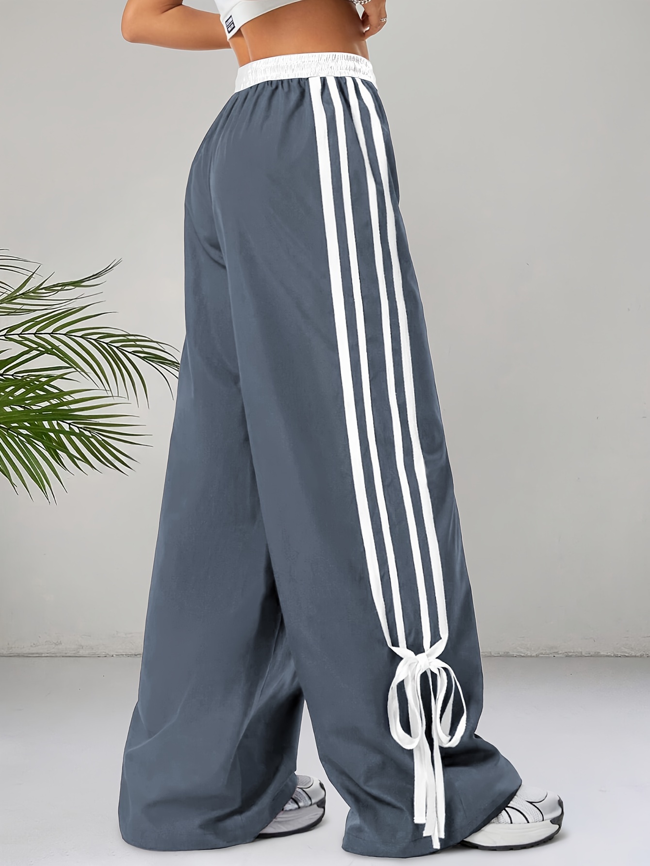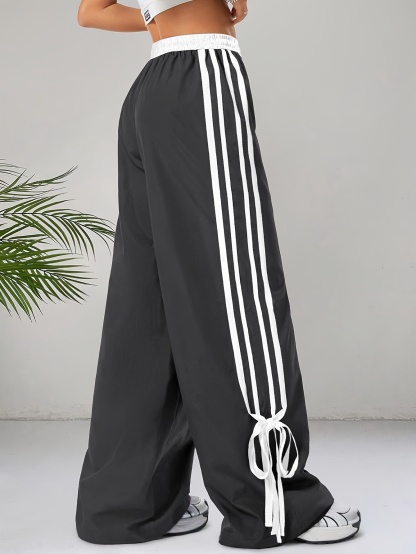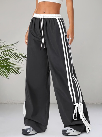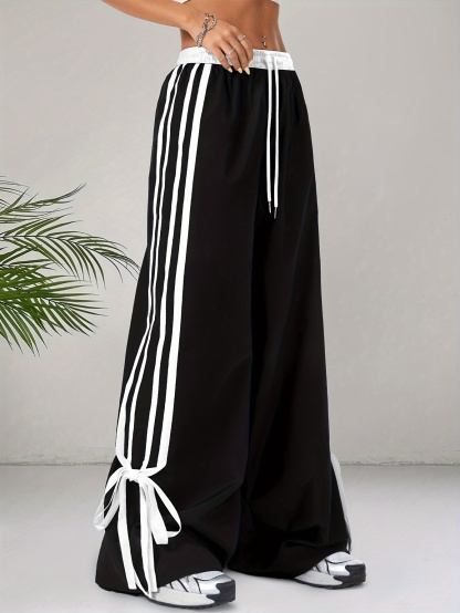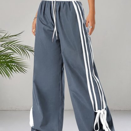 Women'S Fashion Wide-Leg Cargo Pants, Polyester Blend, Solid Color, Elastic Waist, Versatile Loose Fit, Casual Style, All-Season, Woven Fabric, Workwear Trousers