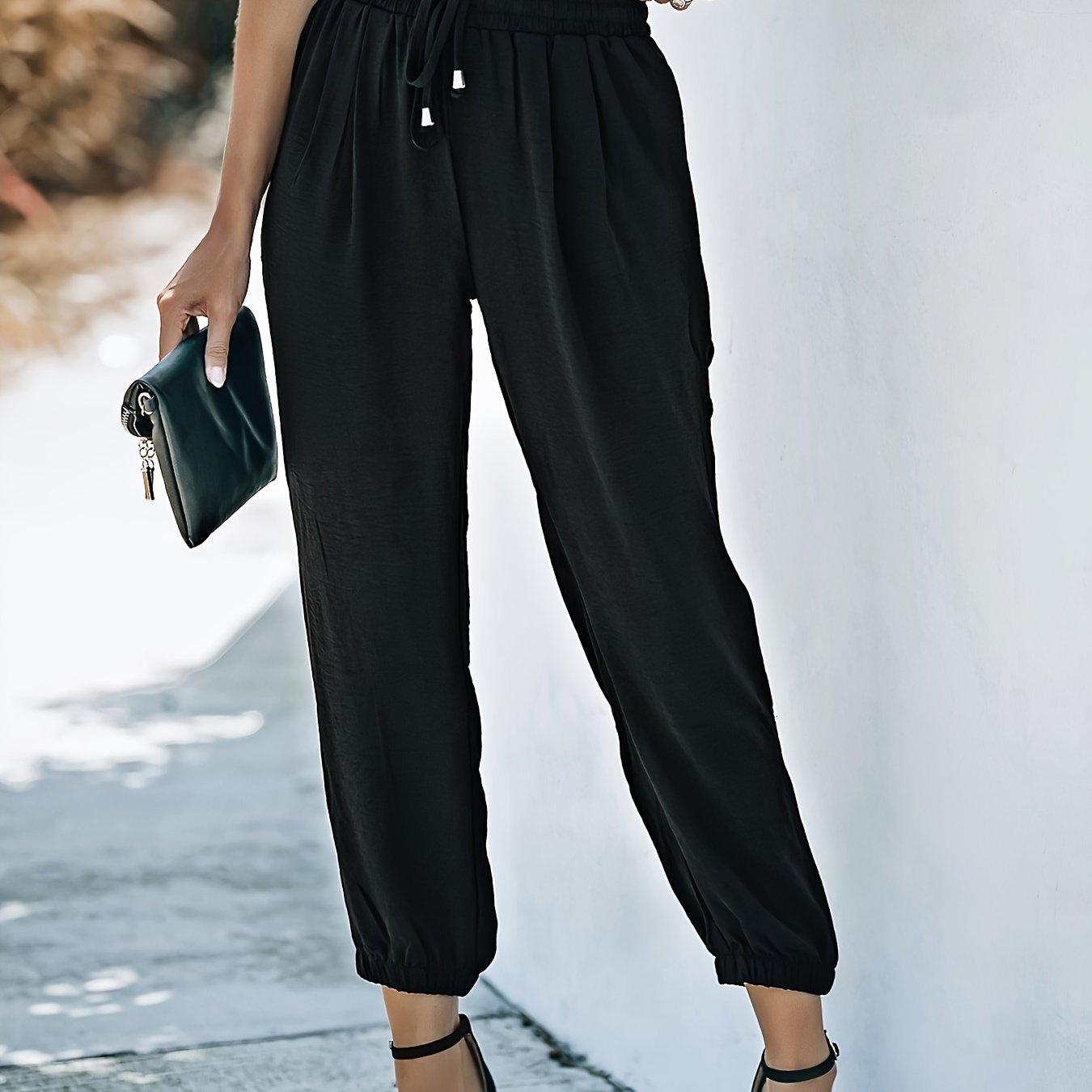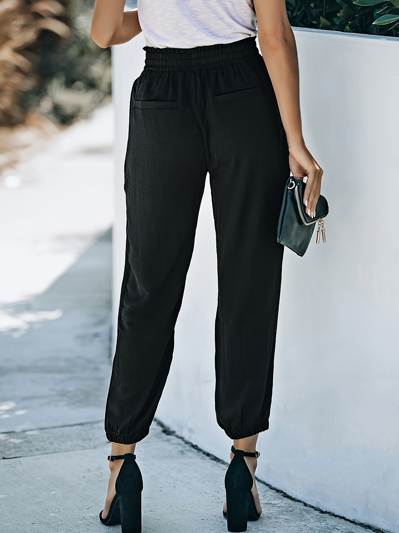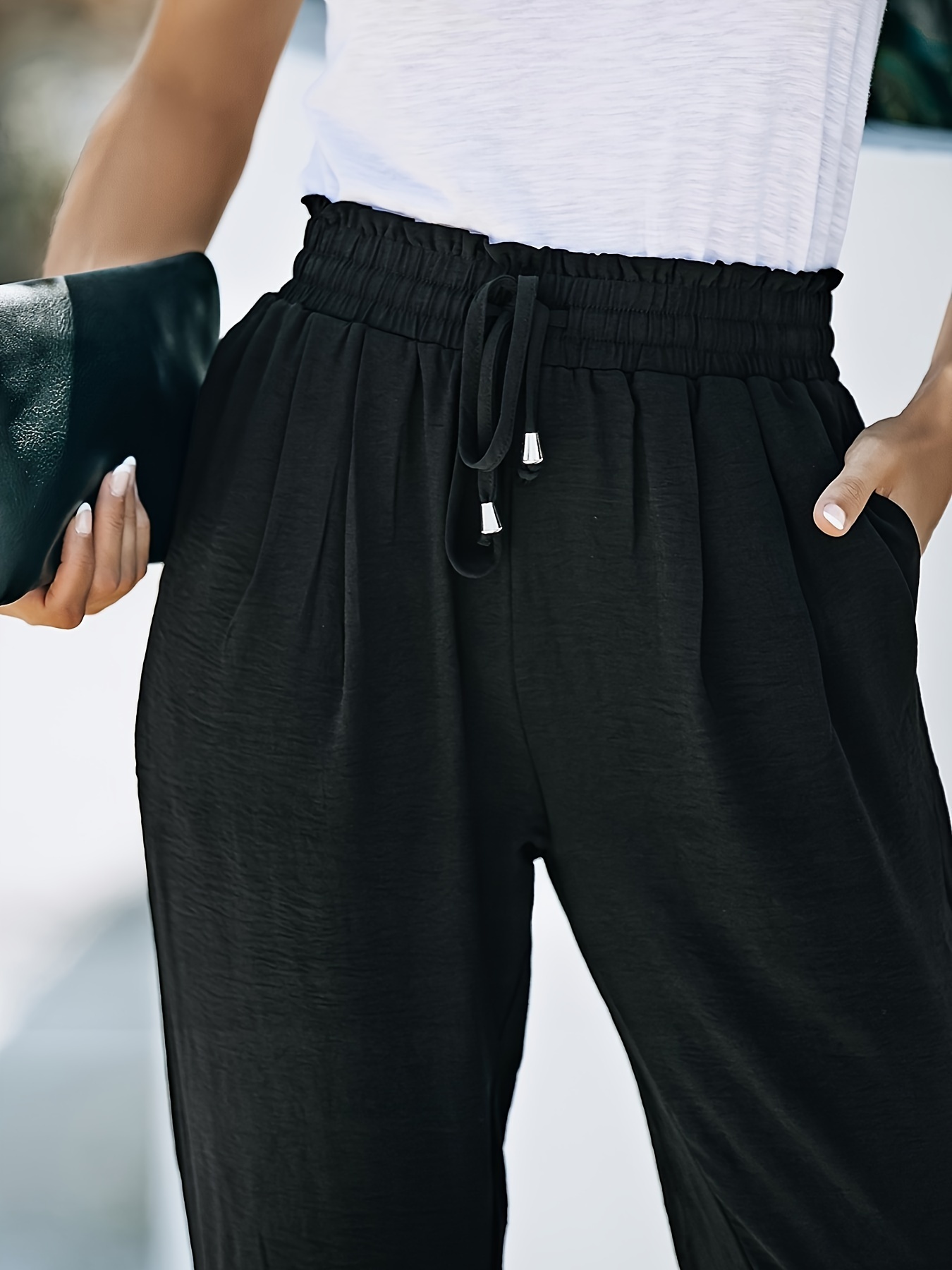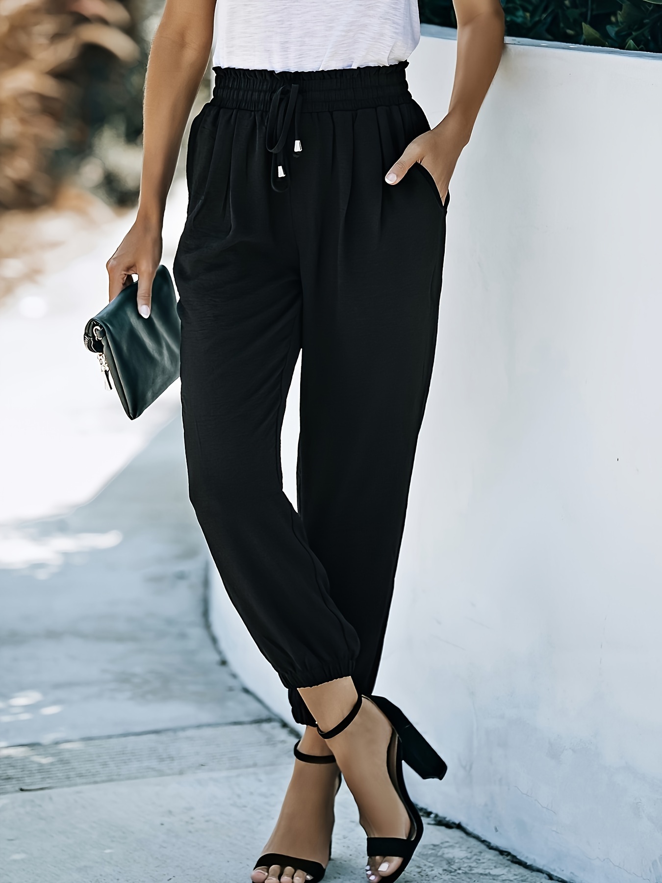 Women's Soft Casual Loose Drawstring Elastic High Waisted Joggers Pants with Pockets