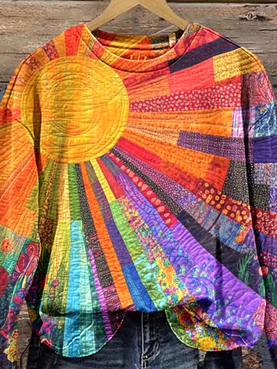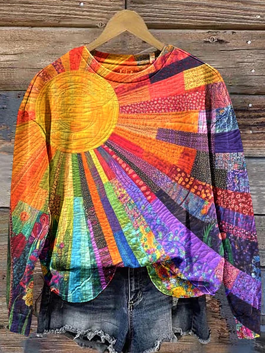 Women's Splicing Pattern Crew Neck Sweatshirt