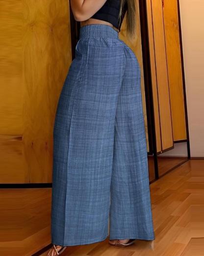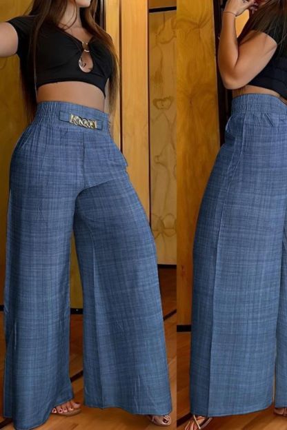 Women's Summer Fashion Chain Casual Pocket High Waist Solid Color Wide Leg Pants