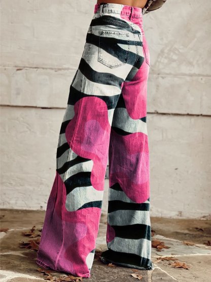 Women's Vintage Contrast Zebra Print Casual Wide Leg Pants