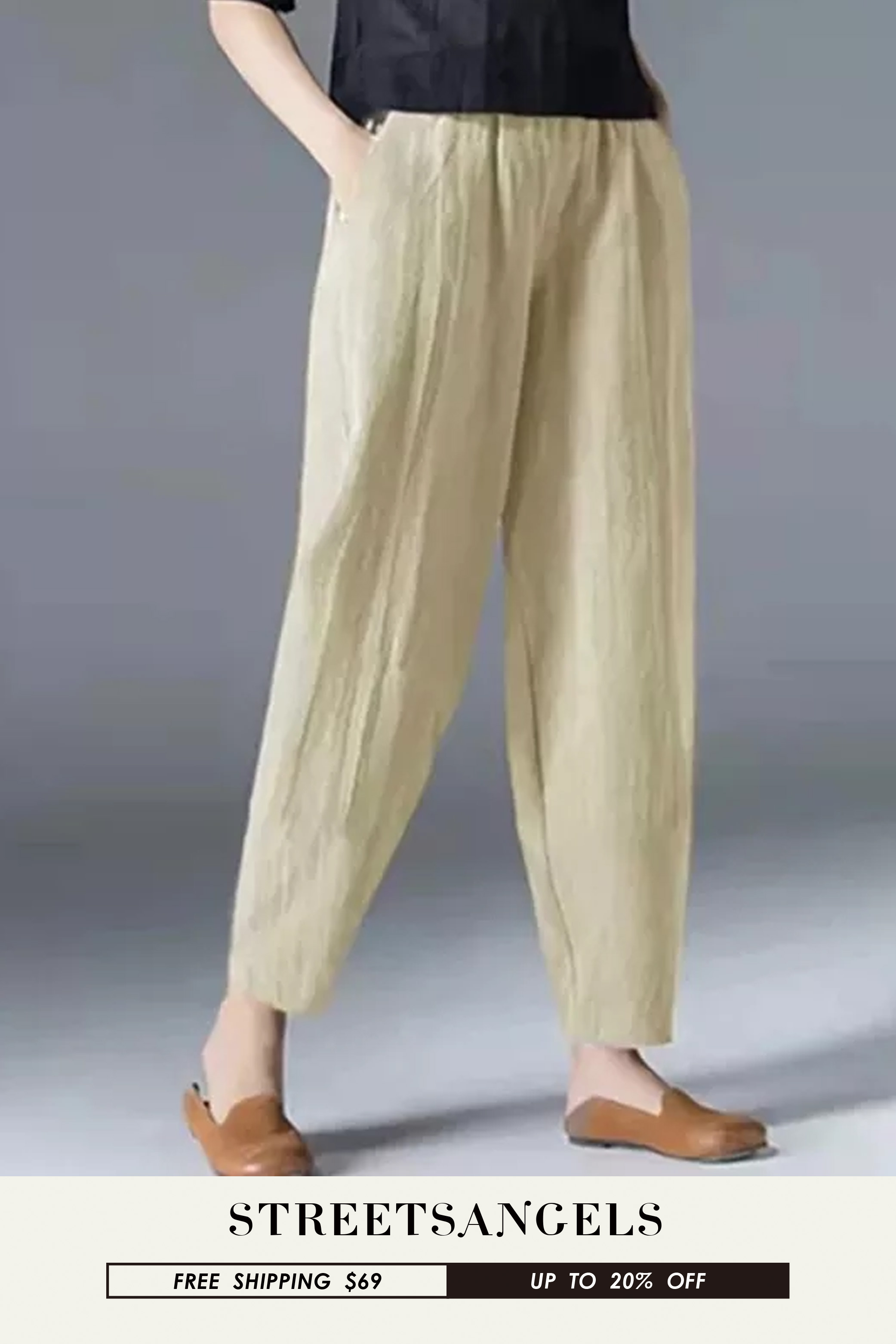 Women's Vintage Fashion Comfortable Linen Cotton Wide Leg Pants