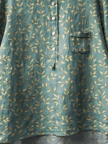 Women's Vintage Floral Art Print Casual Cotton And Linen Shirt
