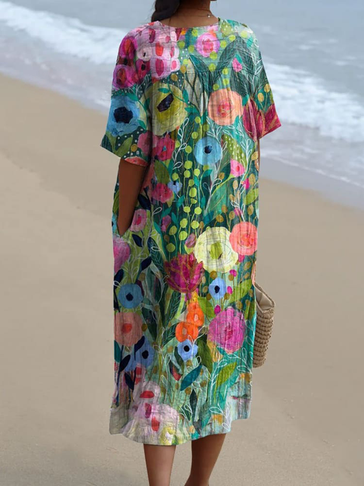 Women's Watercolor Splash Fluid Art Print Flowy Dress