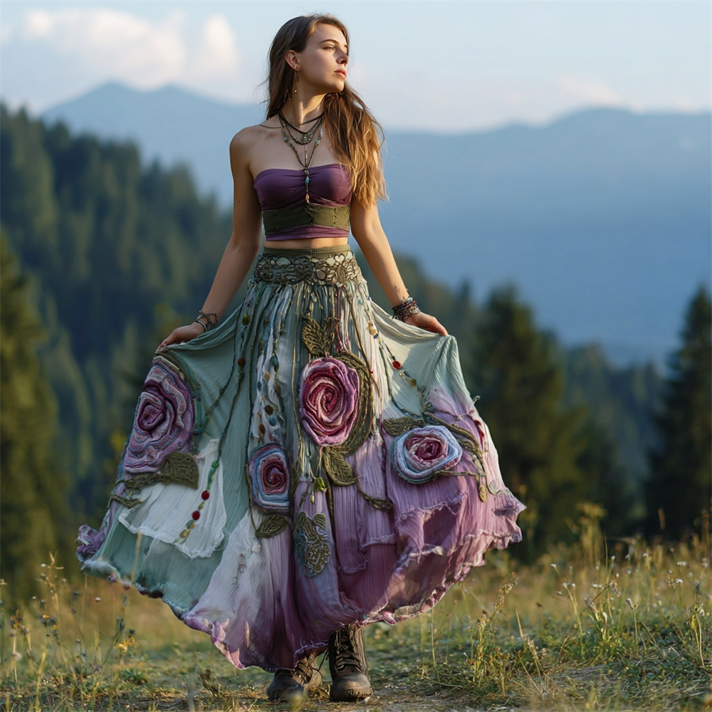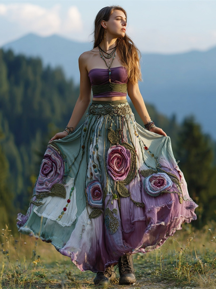 Boho Gauzy Floral Embroidered Women's Half-length Skirt