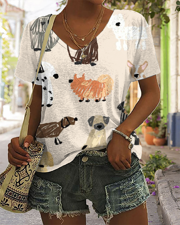 Cute and Funny Cartoon Puppy Print Short-sleeved T-shirt