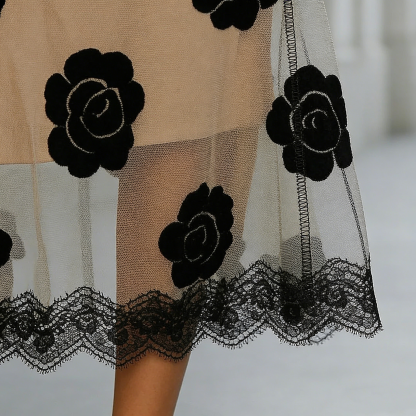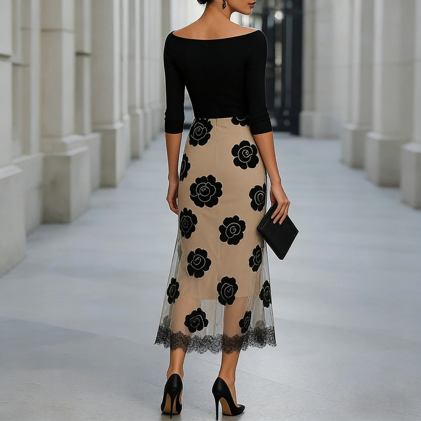 • 3D Floral Appliqués: Large-scale black rose motifs that provide tactile depth and a high-fashion finish.