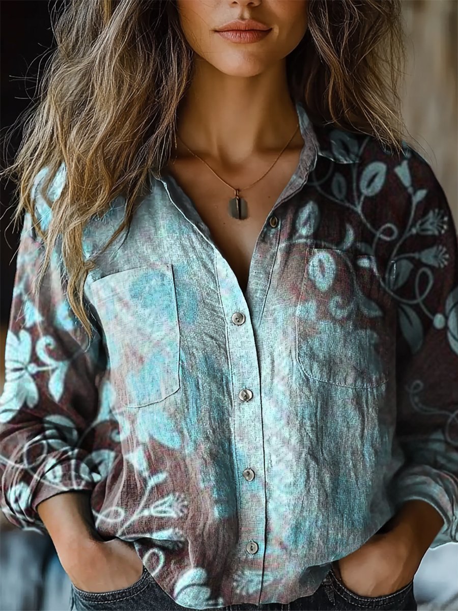 Floral Art Print Casual Long Sleeve Comfortable Cotton Shirt