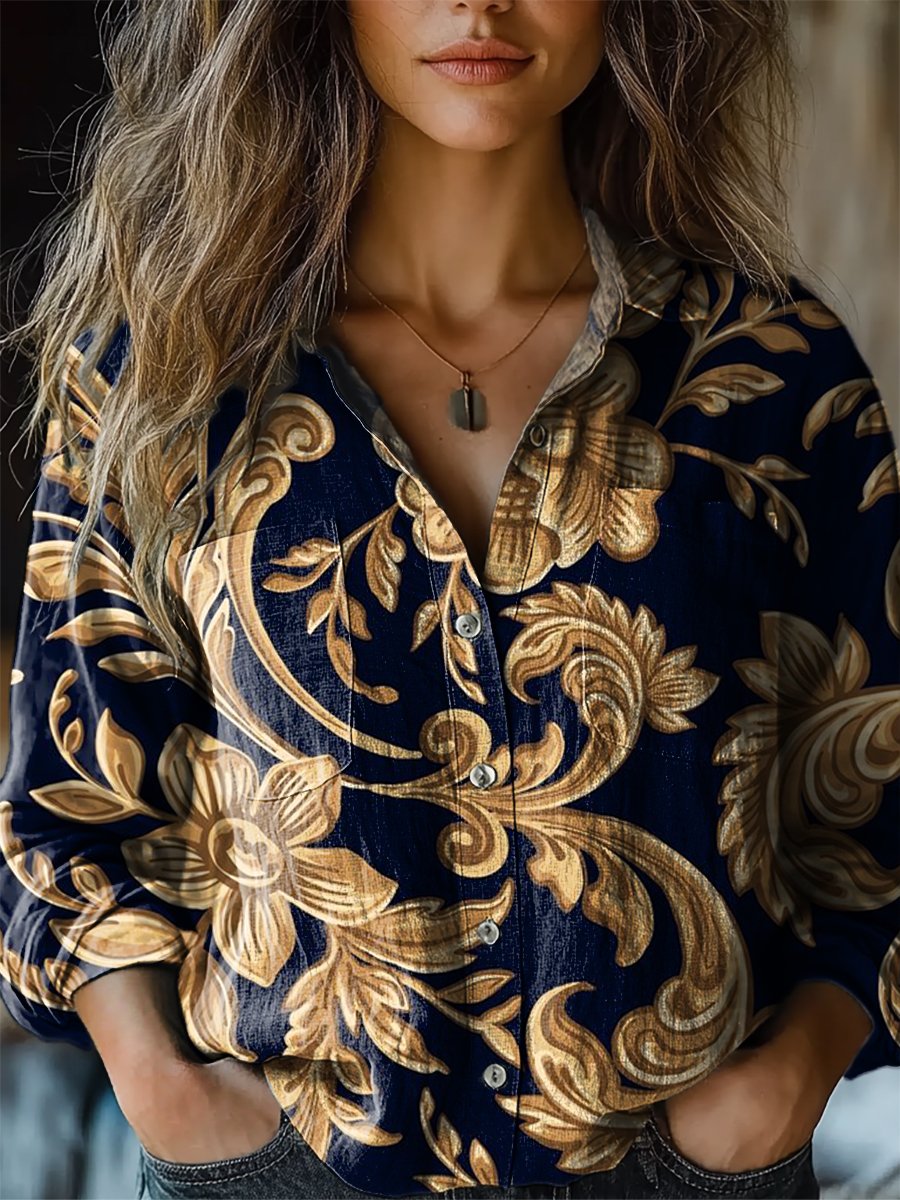 Floral Art Print Casual Long Sleeve Comfortable Cotton Shirt