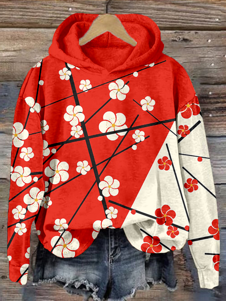 Japanese Apricot Art Casual Comfy Hoodie