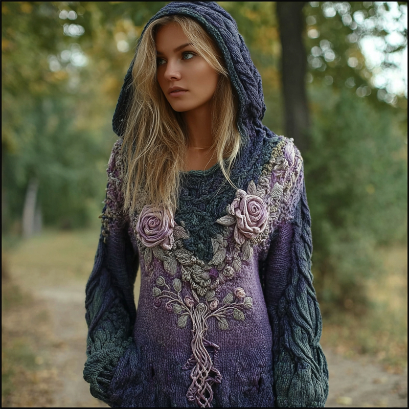 Lavender Roses Viking Tree Of Life Gradient Cozy Hooded Sweater