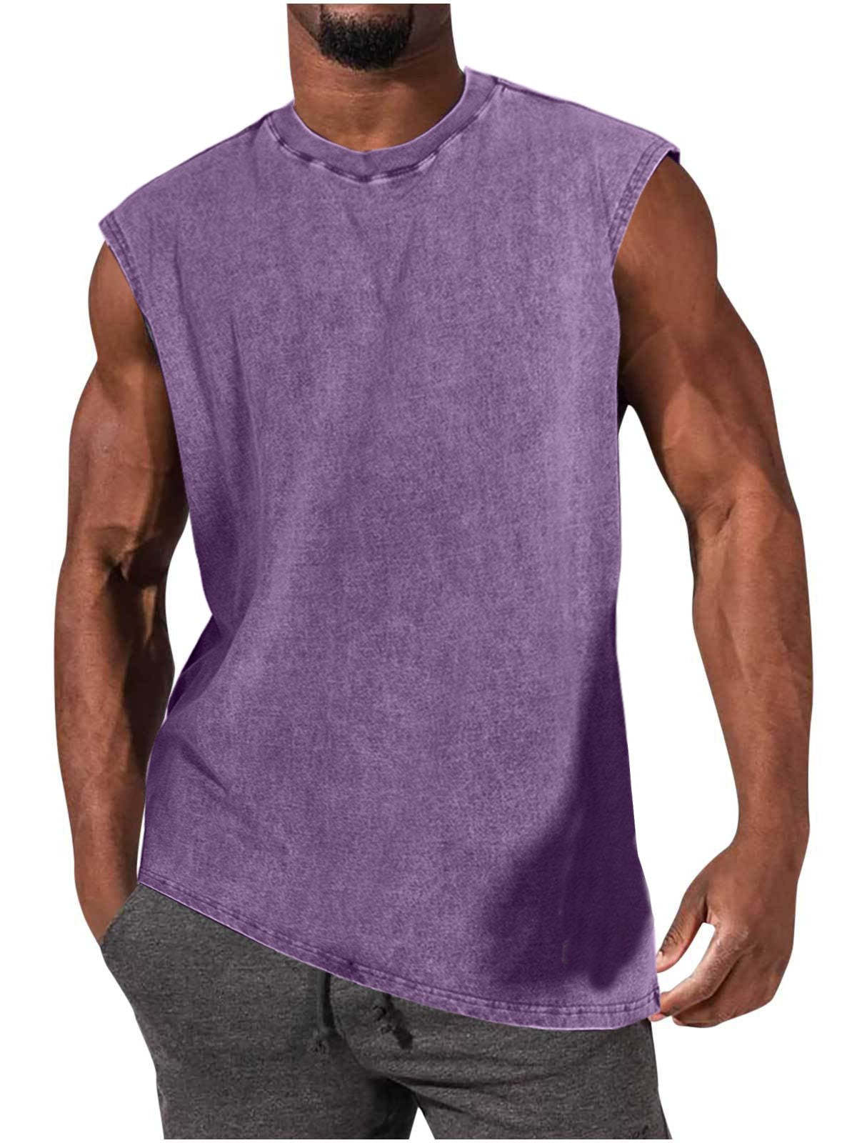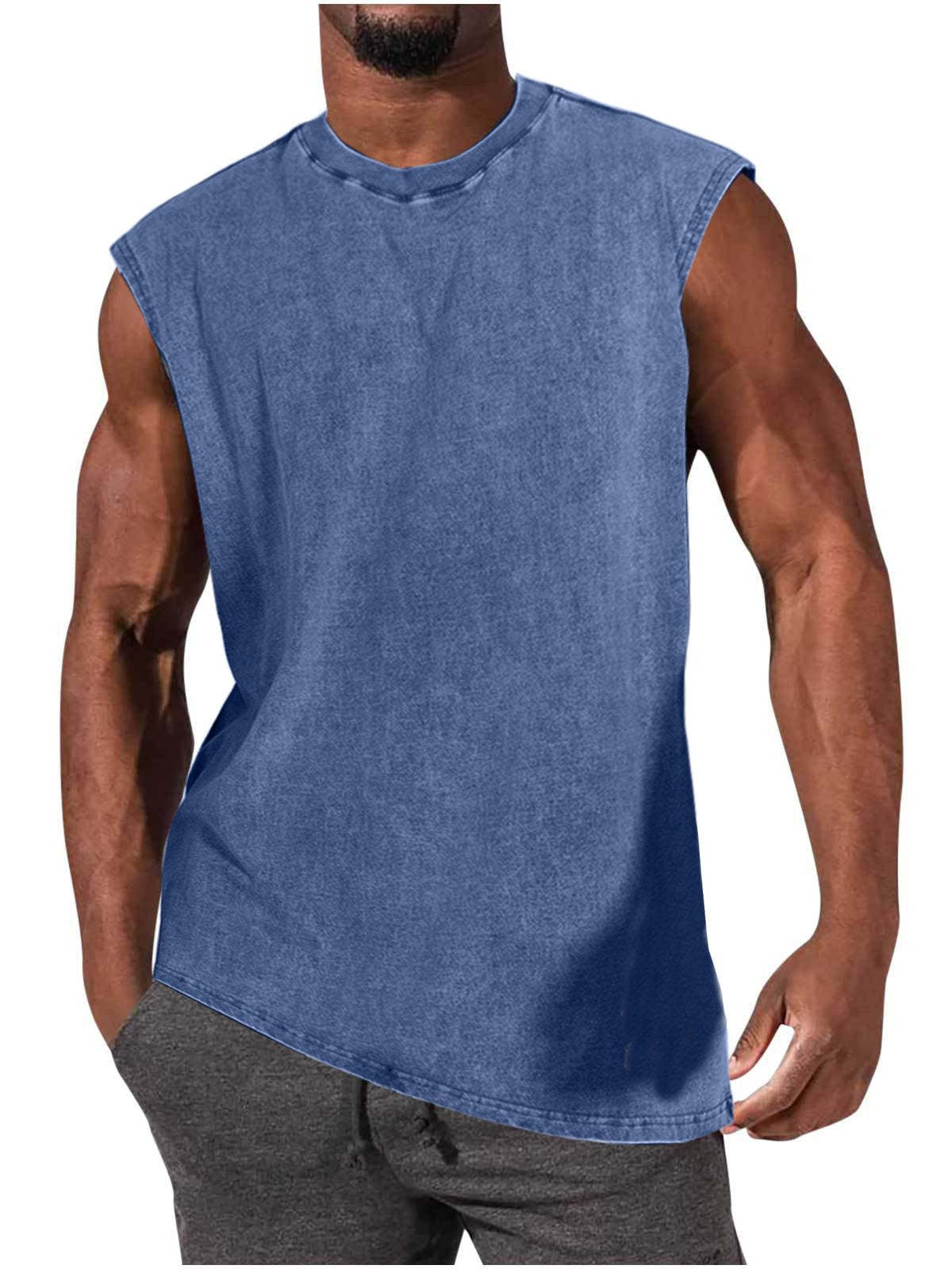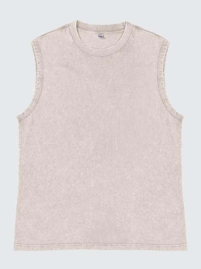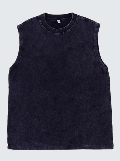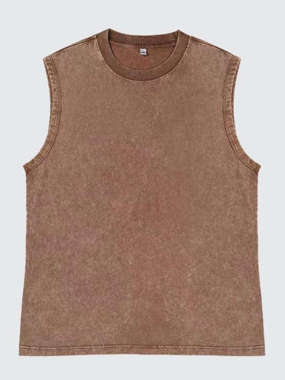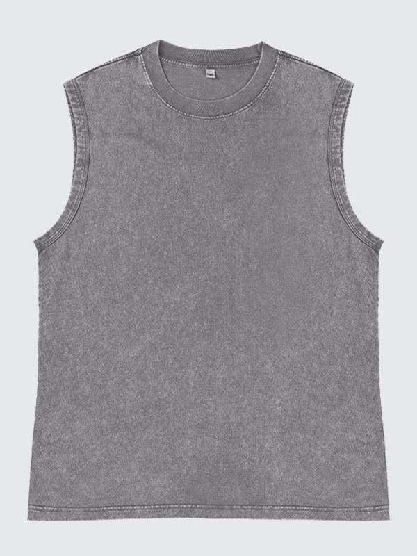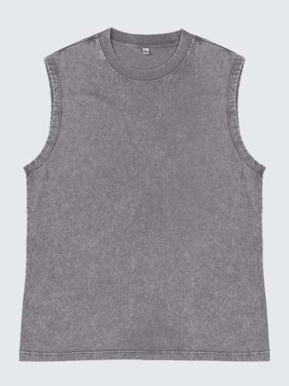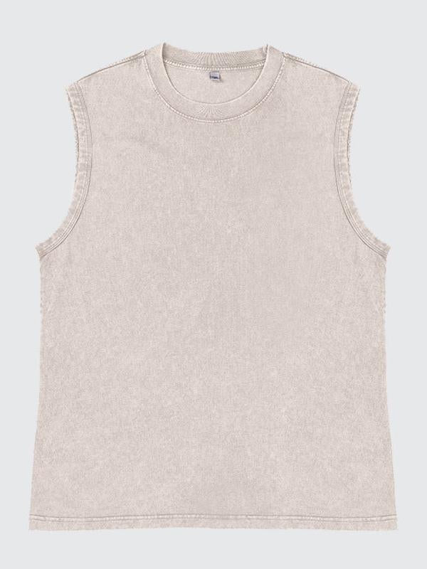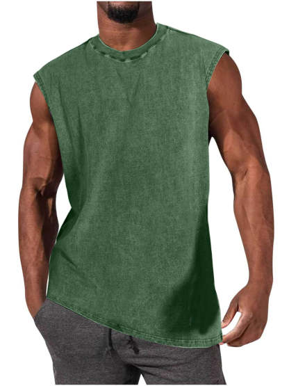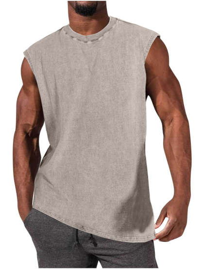 Men's 100% Cotton Washed And Distressed Vintage Round Neck Sleeveless Sports Tank Top