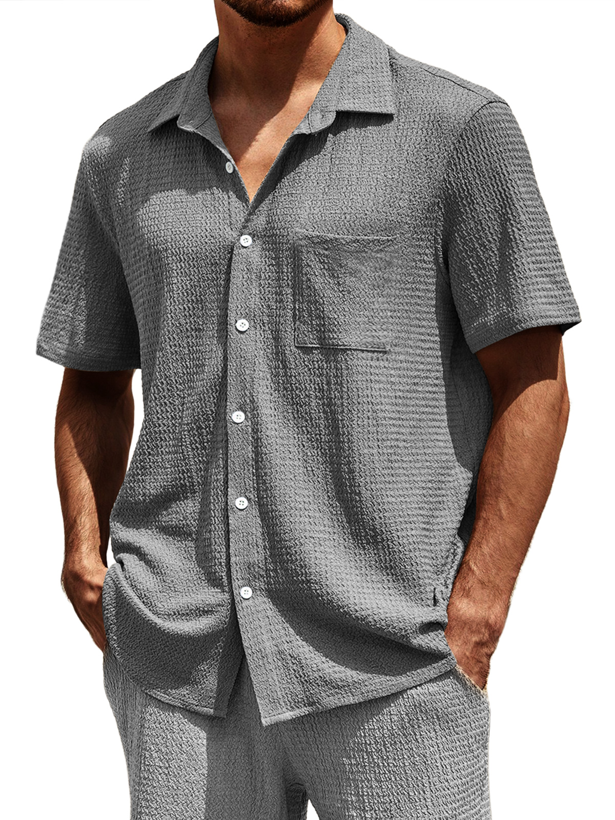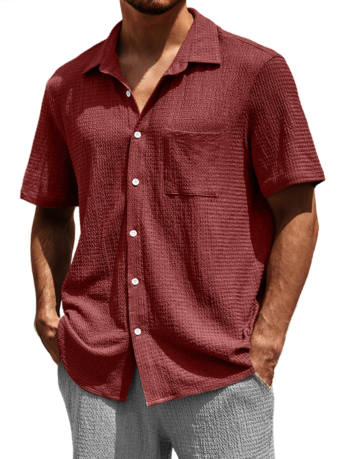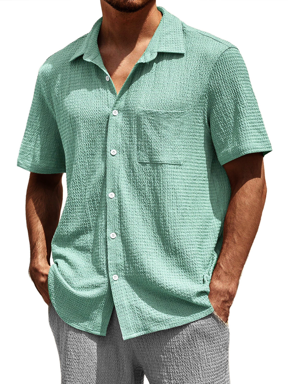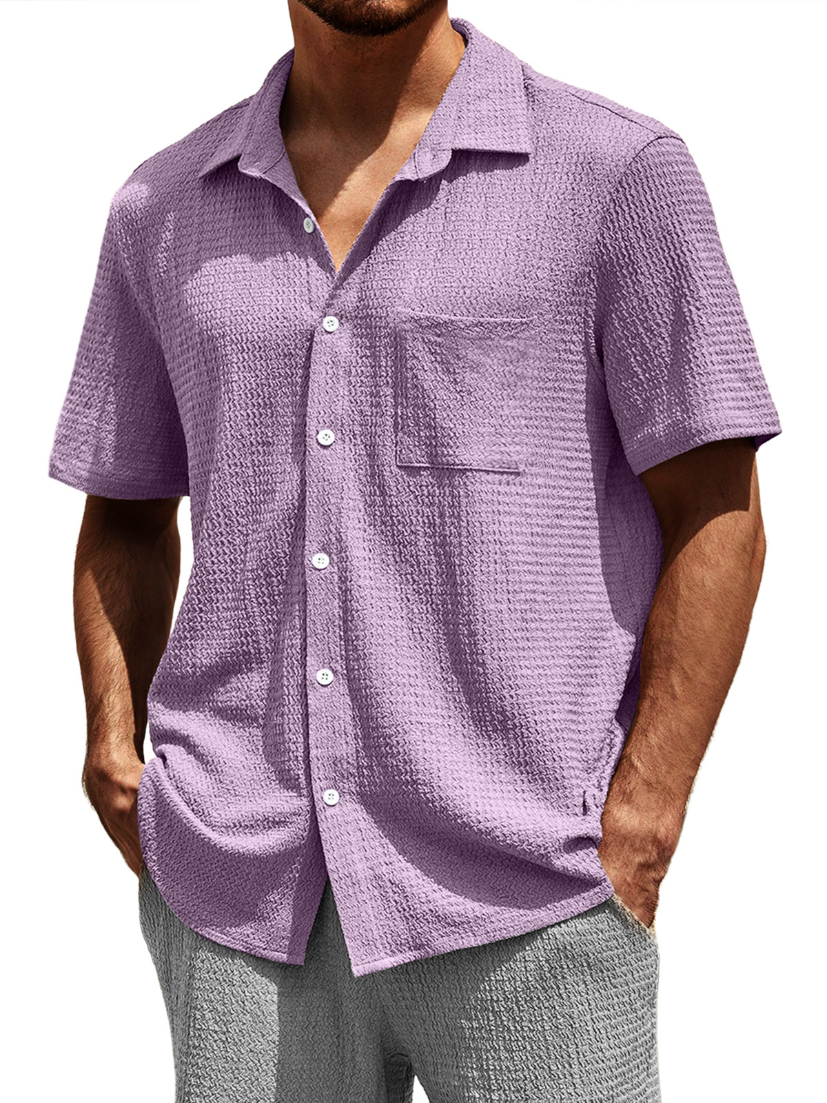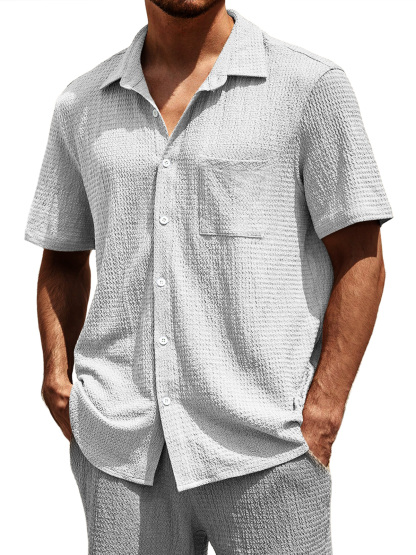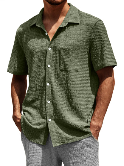 Men's Casual Textured Lapel Pocket Comfortable Short-sleeved Shirt