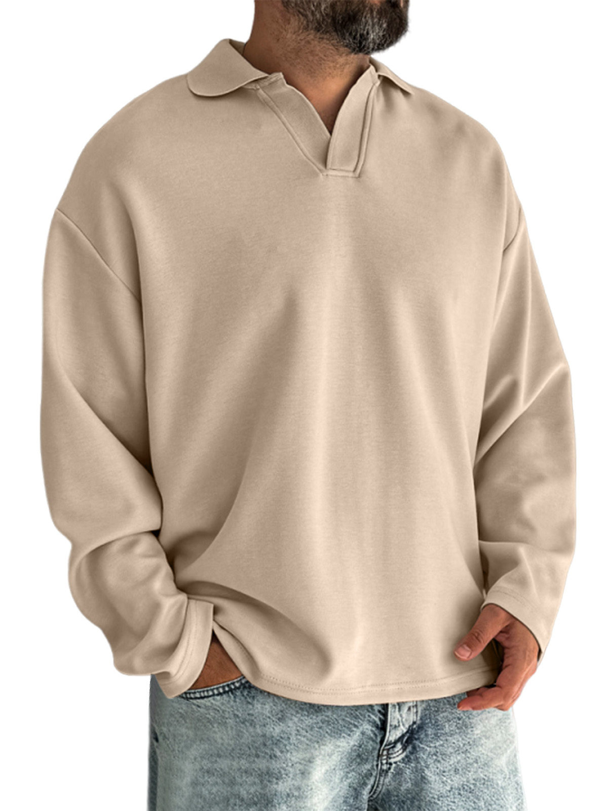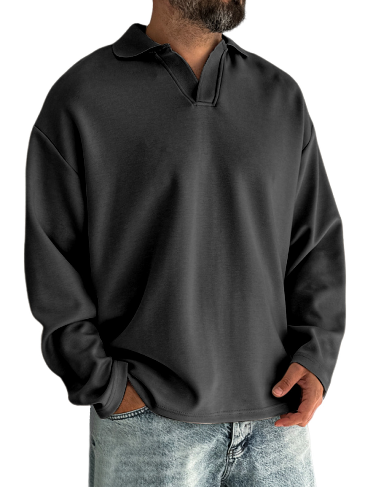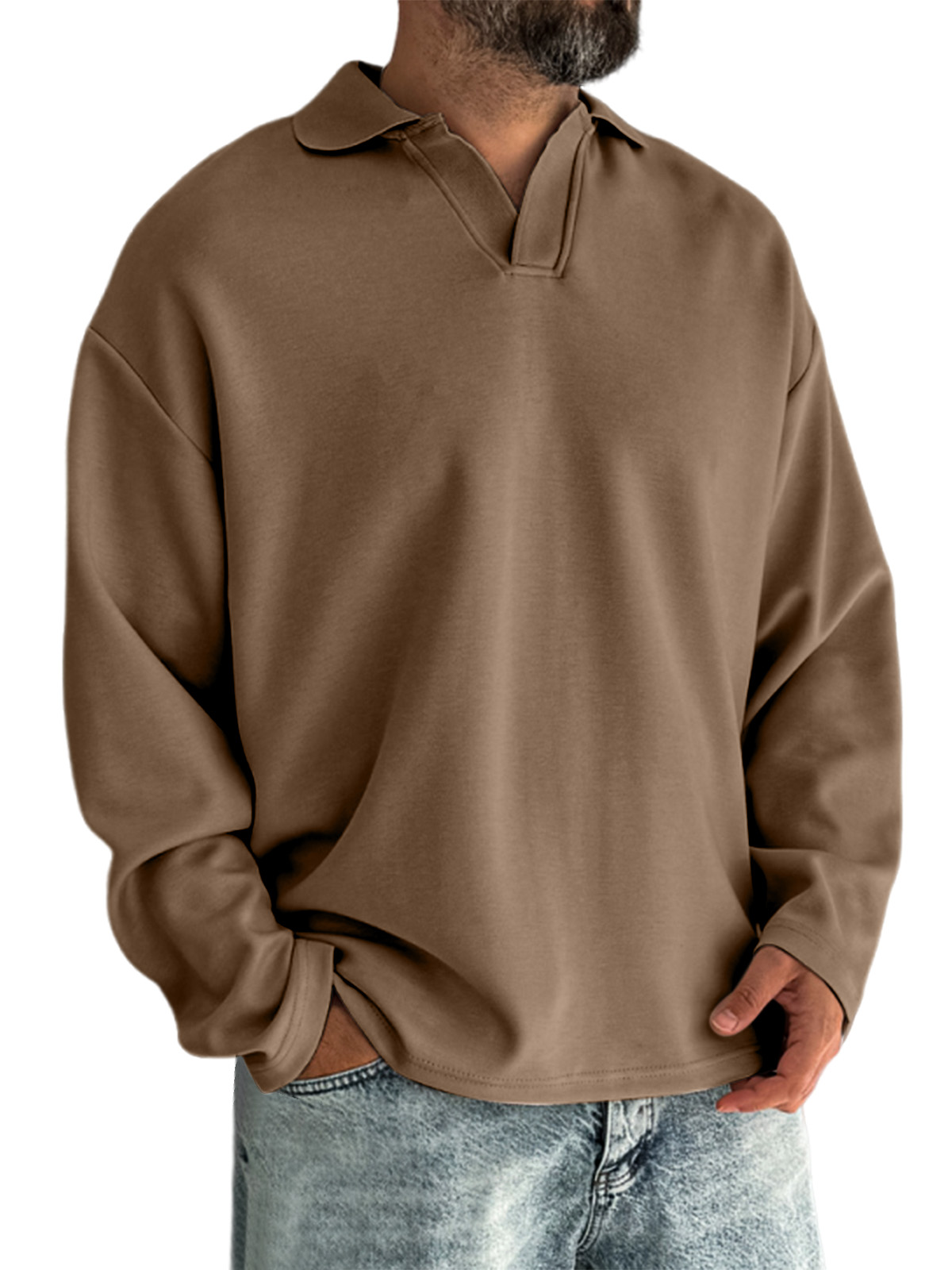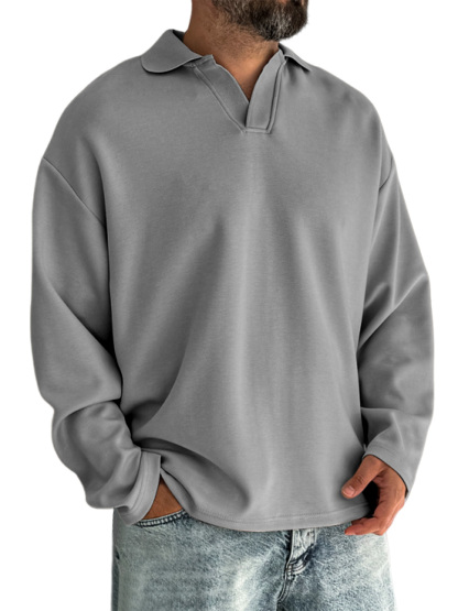 Men's Daily Lapel Solid Color Long-sleeved Sweatshirt