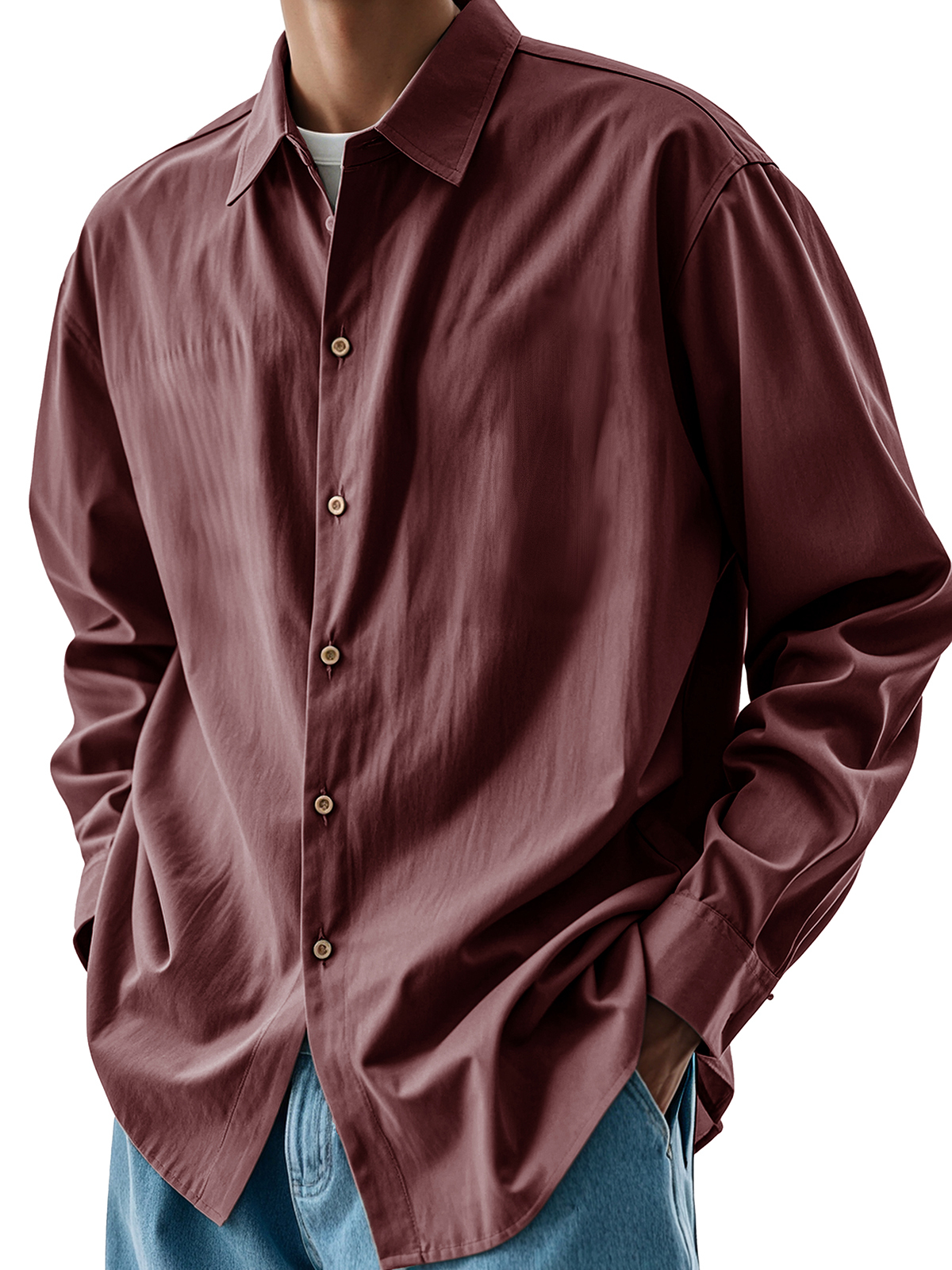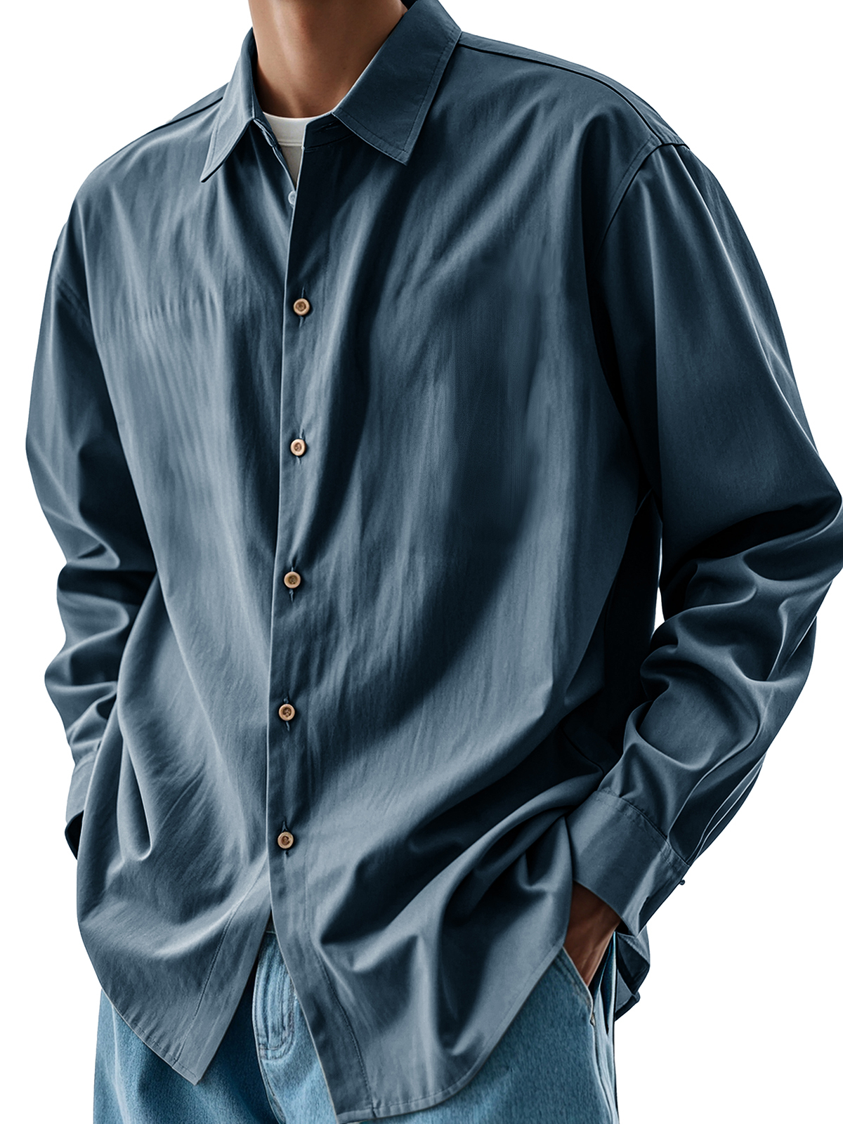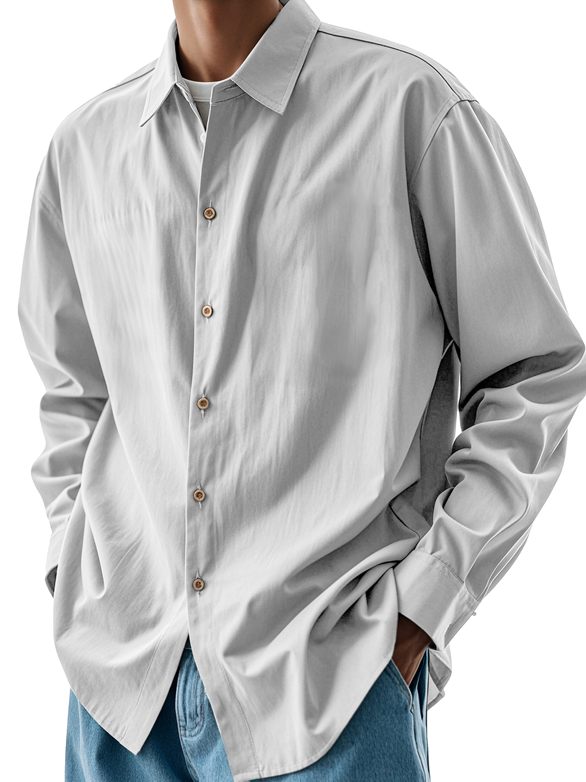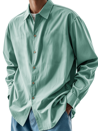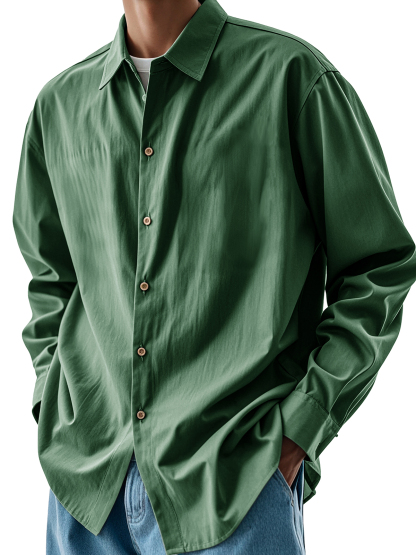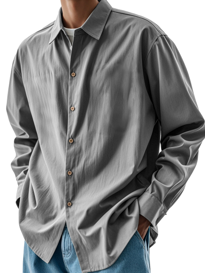 Men's Fashion Retro Pleated Fabric Lapel Long-sleeved Shirt