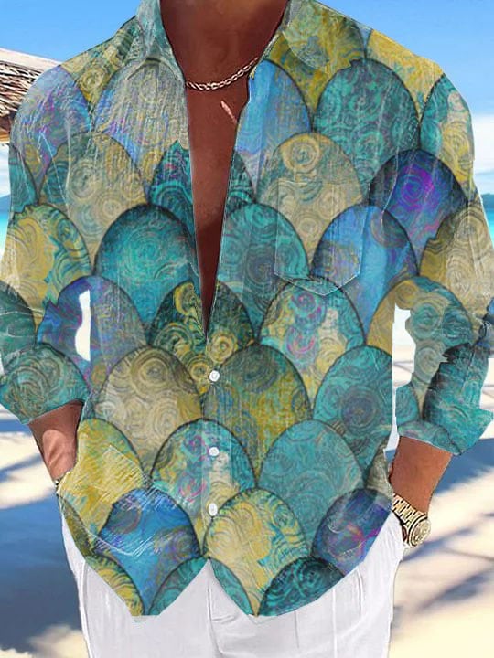 Men's Resort Beach Wave Floral Long Sleeve Shirt