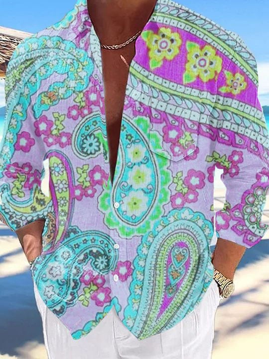 Men's Resort Beach Wave Floral Long Sleeve Shirt