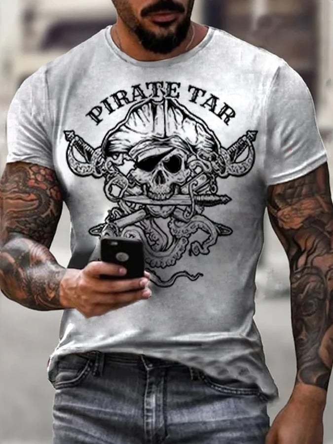 PIRATE CAPTAIN SKULL OCTOPUS PRINT MEN'S CASUAL T-SHIRT