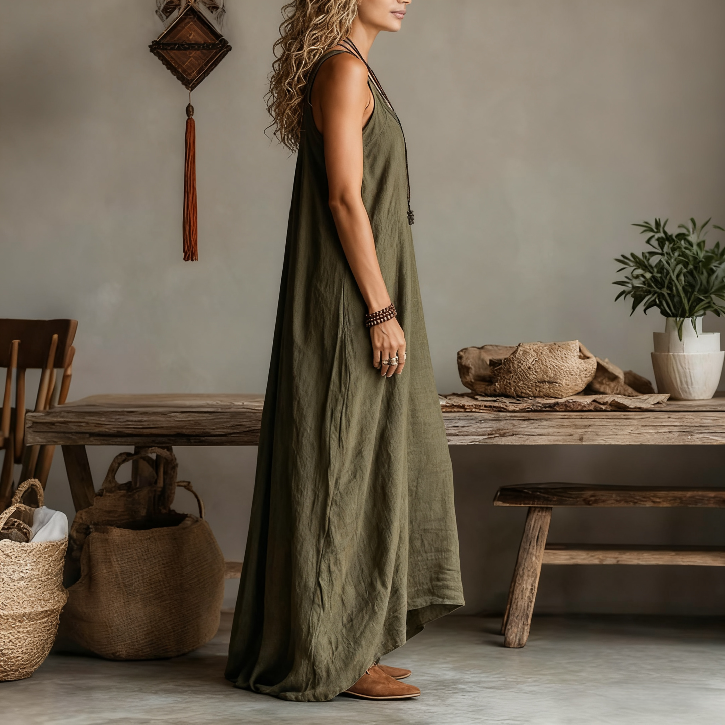 🌿 Retro Casual Loose Cotton & Linen Suspender Long Skirt