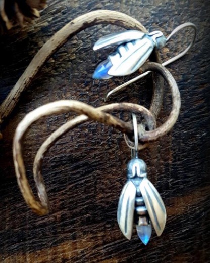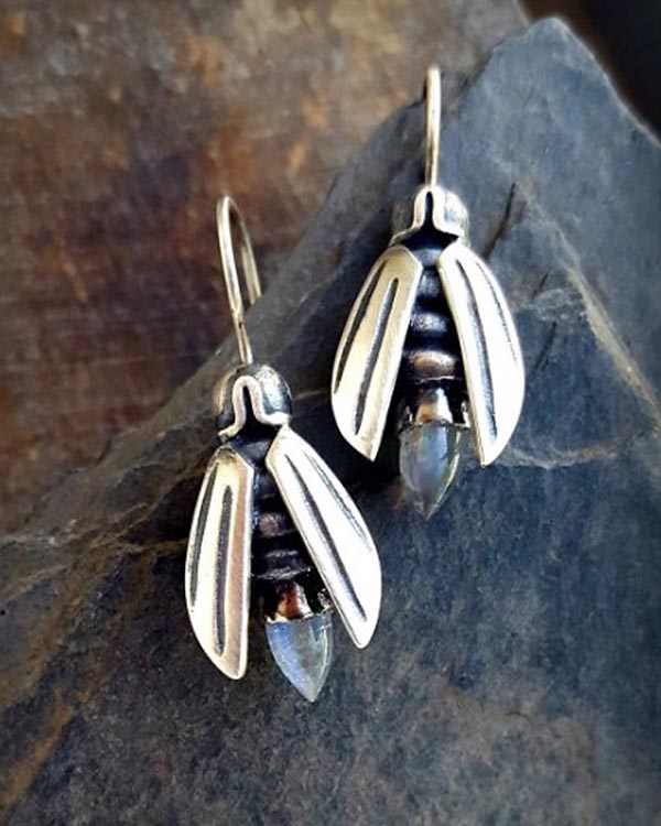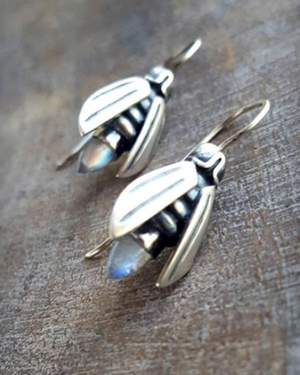 Simple Firefly Moonstone Insect Earrings