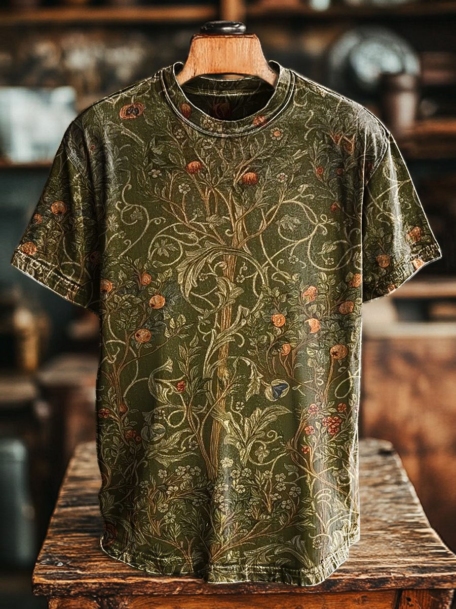 Unisex Retro Botanical Floral Print Casual Loose Short Sleeve T-Shirt