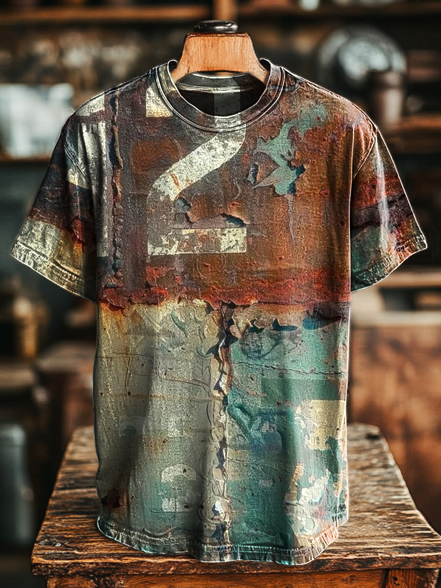 Unisex Vintage Aged Digital Mottled Print Casual Loose T-Shirt