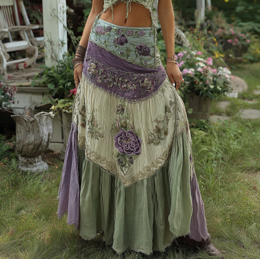 Vintage Classy Gradient Purple Lavender And Floral Embroidered Boho Half-length Skirt