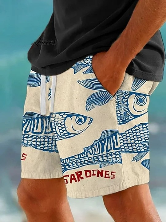 Vintage Fish Sardines Art Print Casual Shorts