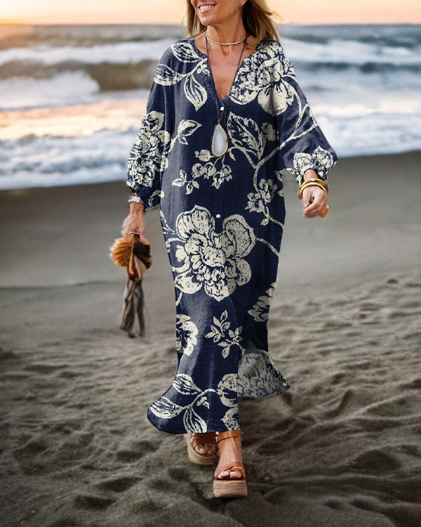 Vintage Floral Long Sleeve Cardigan Maxi Dress