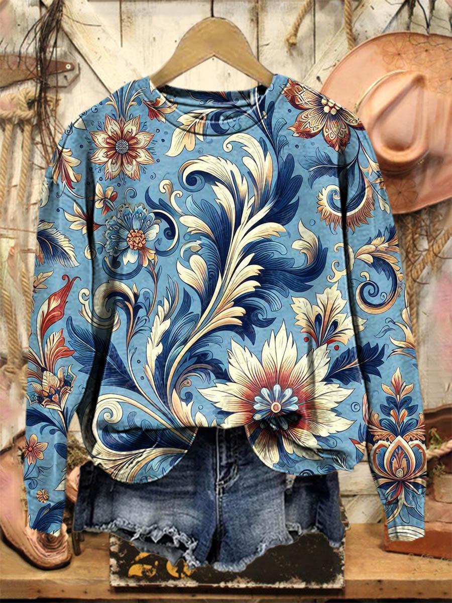 Vintage Lovely Floral Art Print Casual Sweatshirt