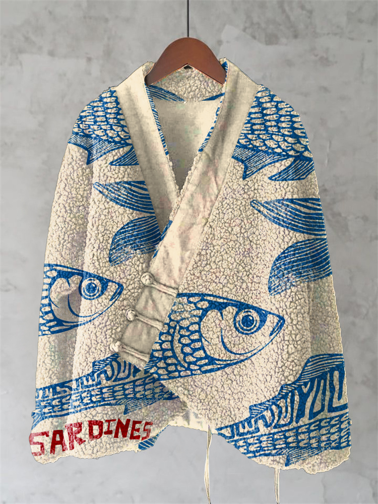 Vintage Sardine Art Wool Kimono Cardigan
