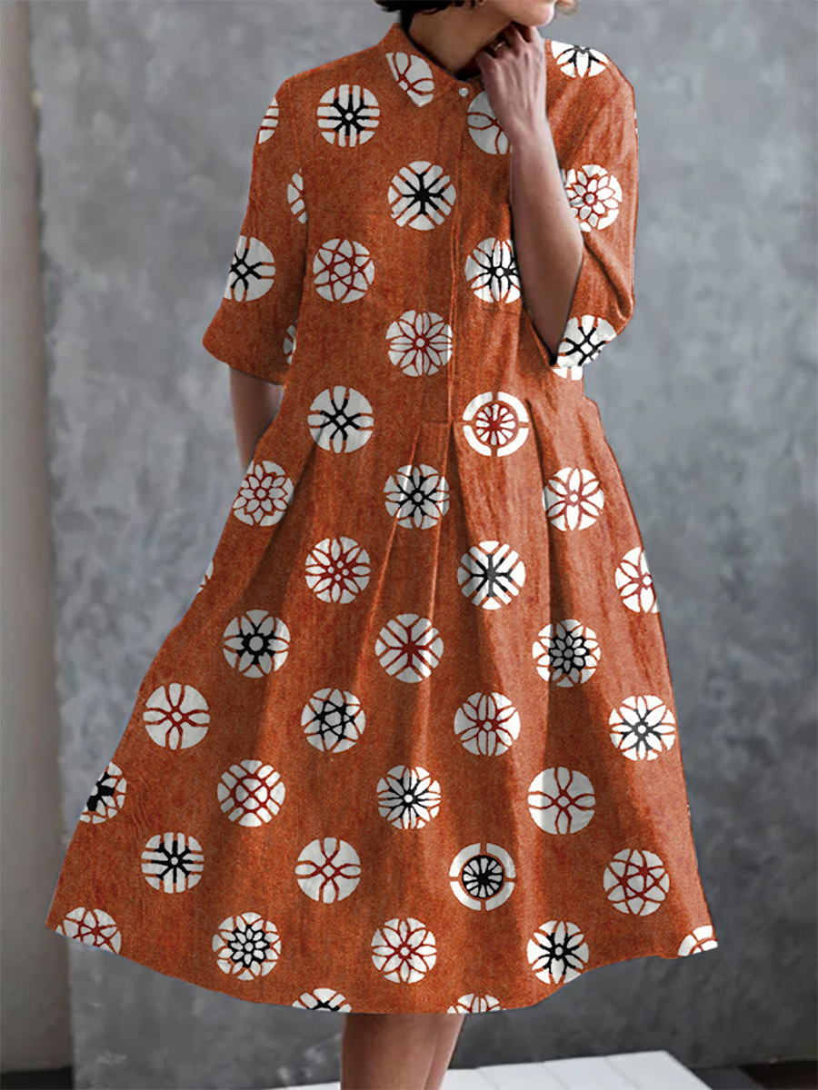 Women's Japanese Print Casual Elegant Pocket Half Sleeve Dress