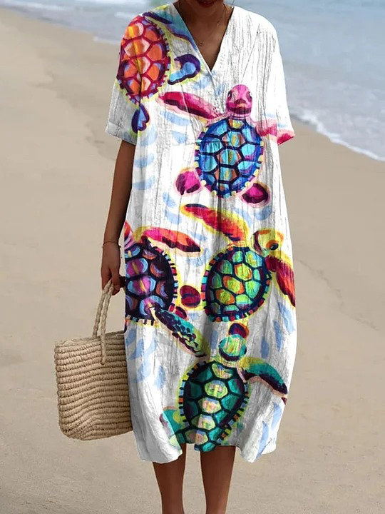 Women's Sea Turtle Art Print Casual Dress