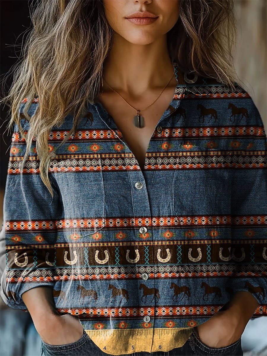Women's Vintage Art Print Casual Long Sleeve Comfortable Cotton Shirt