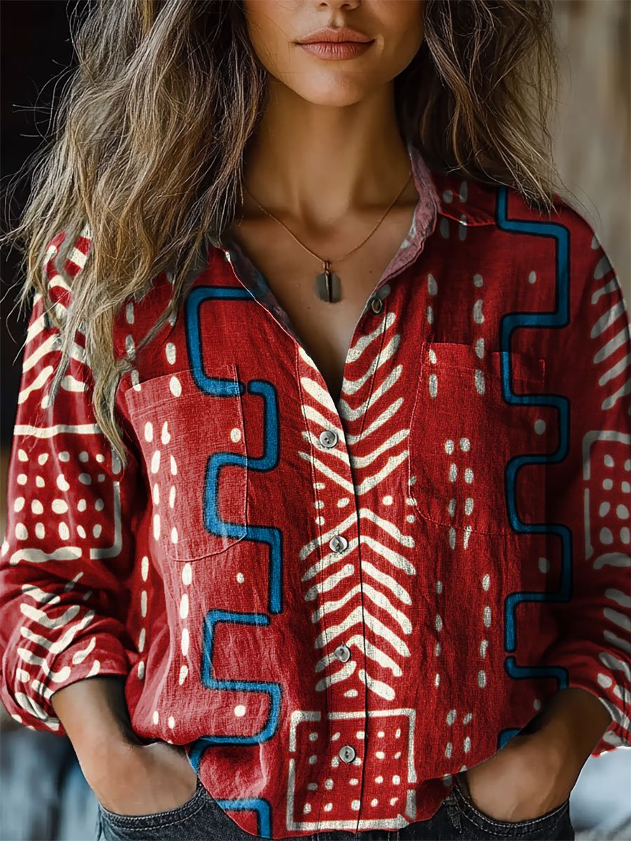 Women's Vintage Graphic Art Print Casual Long Sleeve Comfortable Cotton Shirt