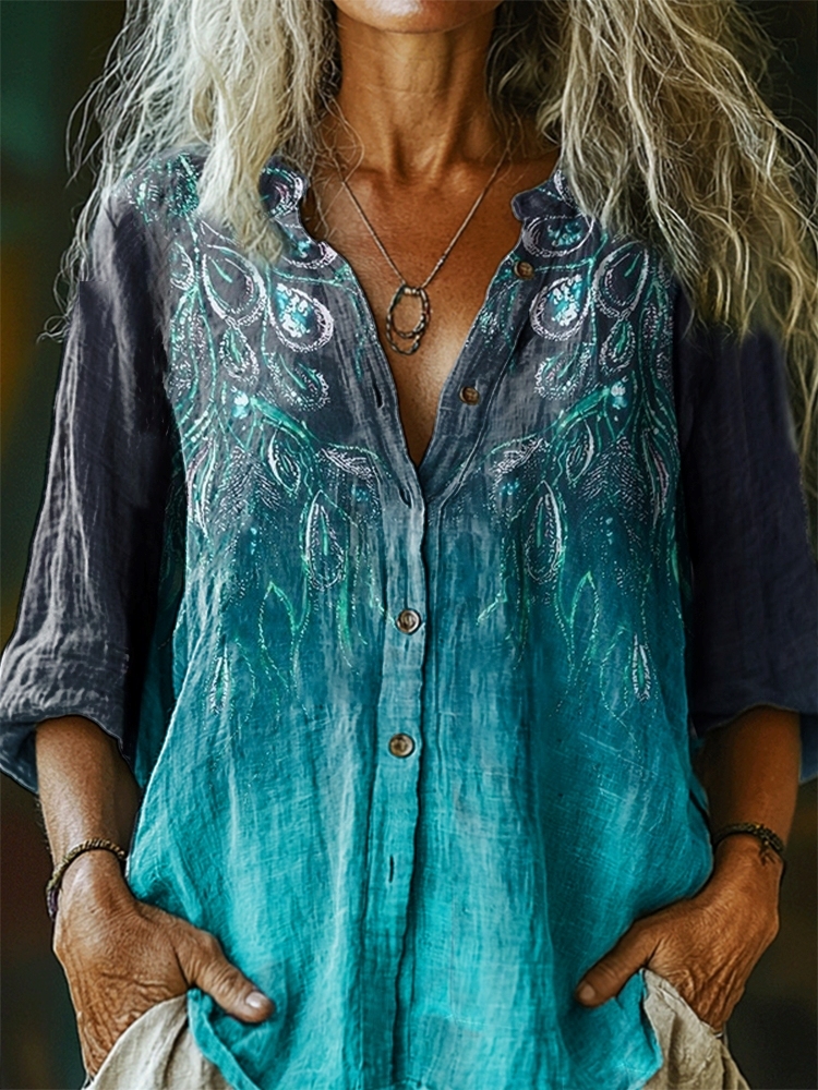 Women's Vintage Tattoo Pattern Art Print Casual Cotton Linen Shirt