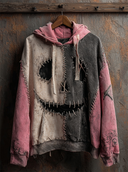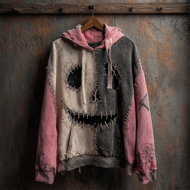 Halloween Pumpkin Face Contrast Stitched Washed Hoodie