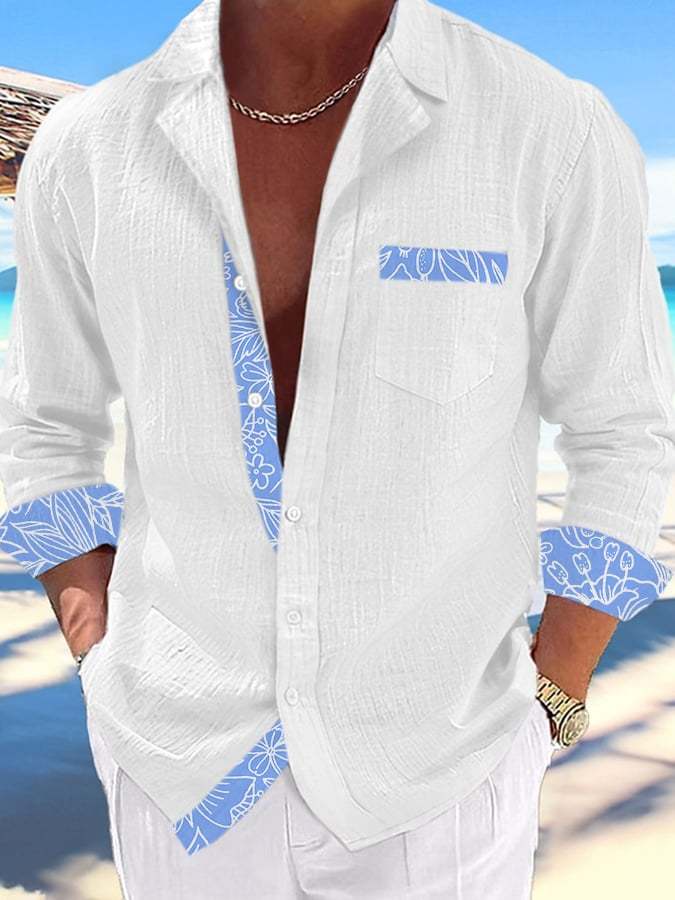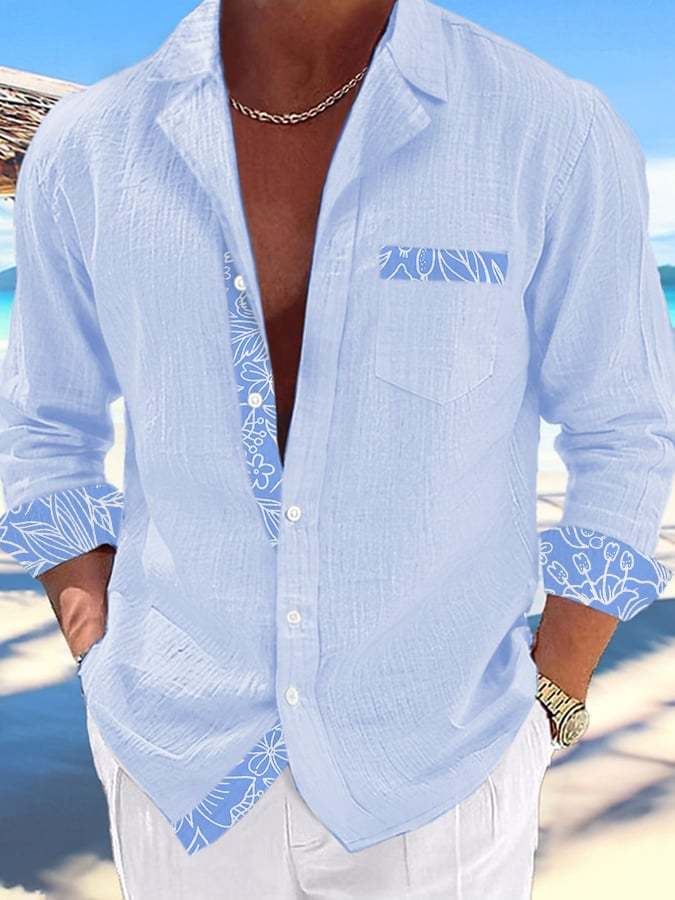 Men's Cuban Collar Hawaiian Print Fashionable Resort Casual Shirt (With Pockets)