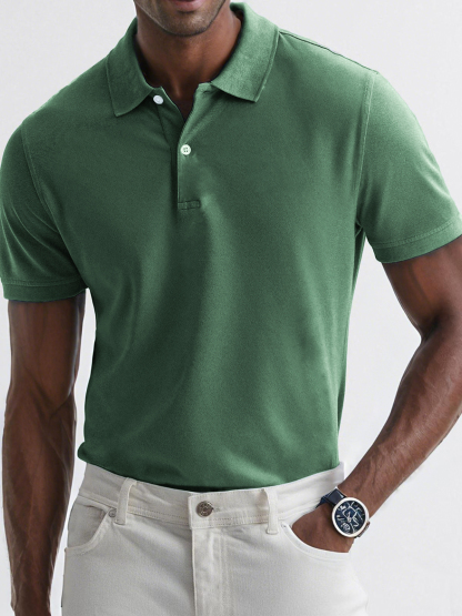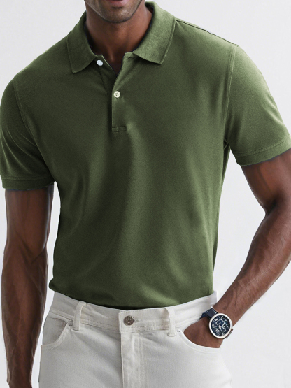 Men's Dyed Vintage Business Lapel Button Texture Distressed Casual Short Sleeve POLO Shirt