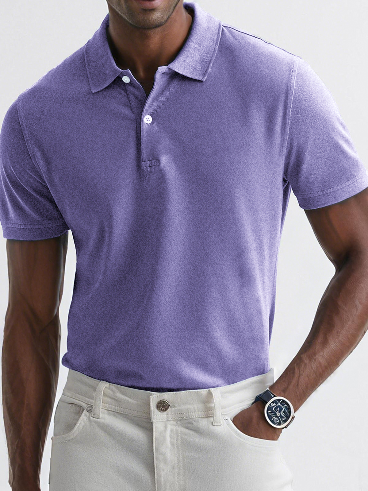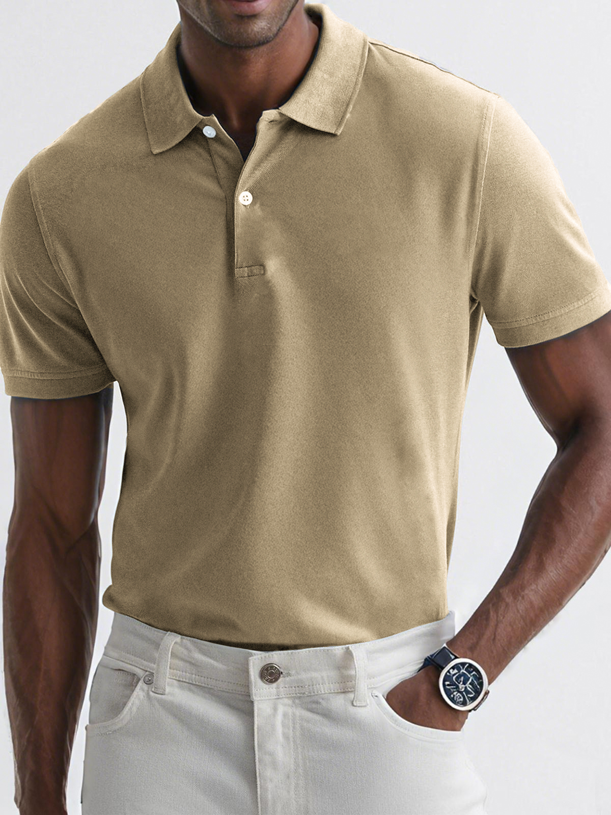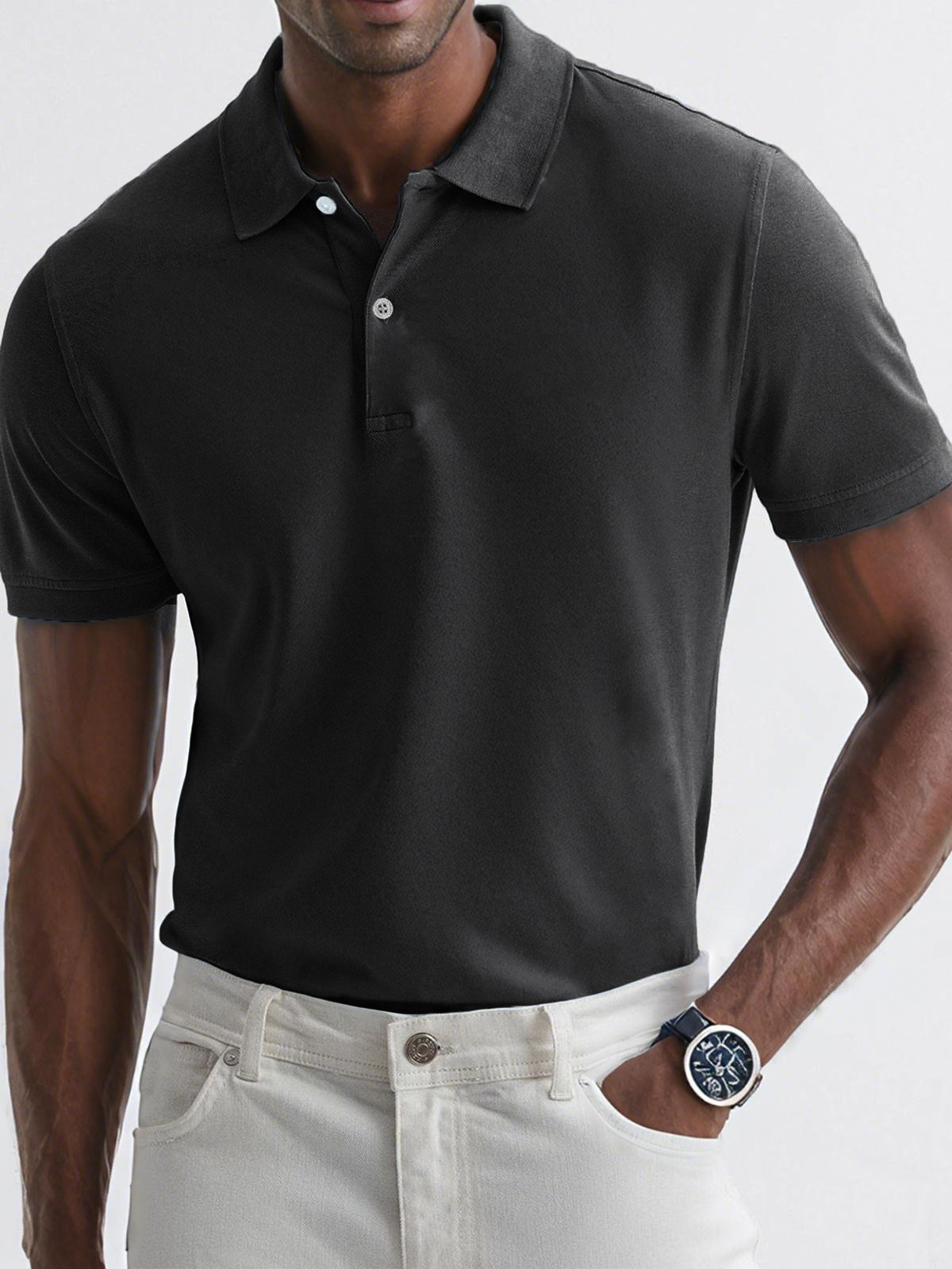 - Neckline:Button polo collar