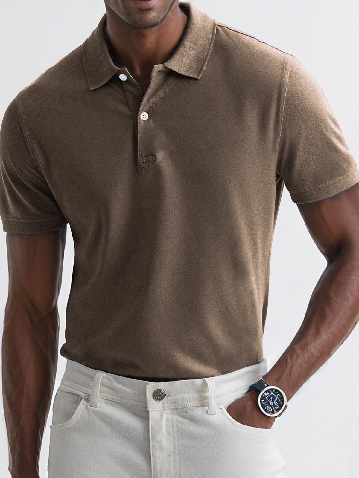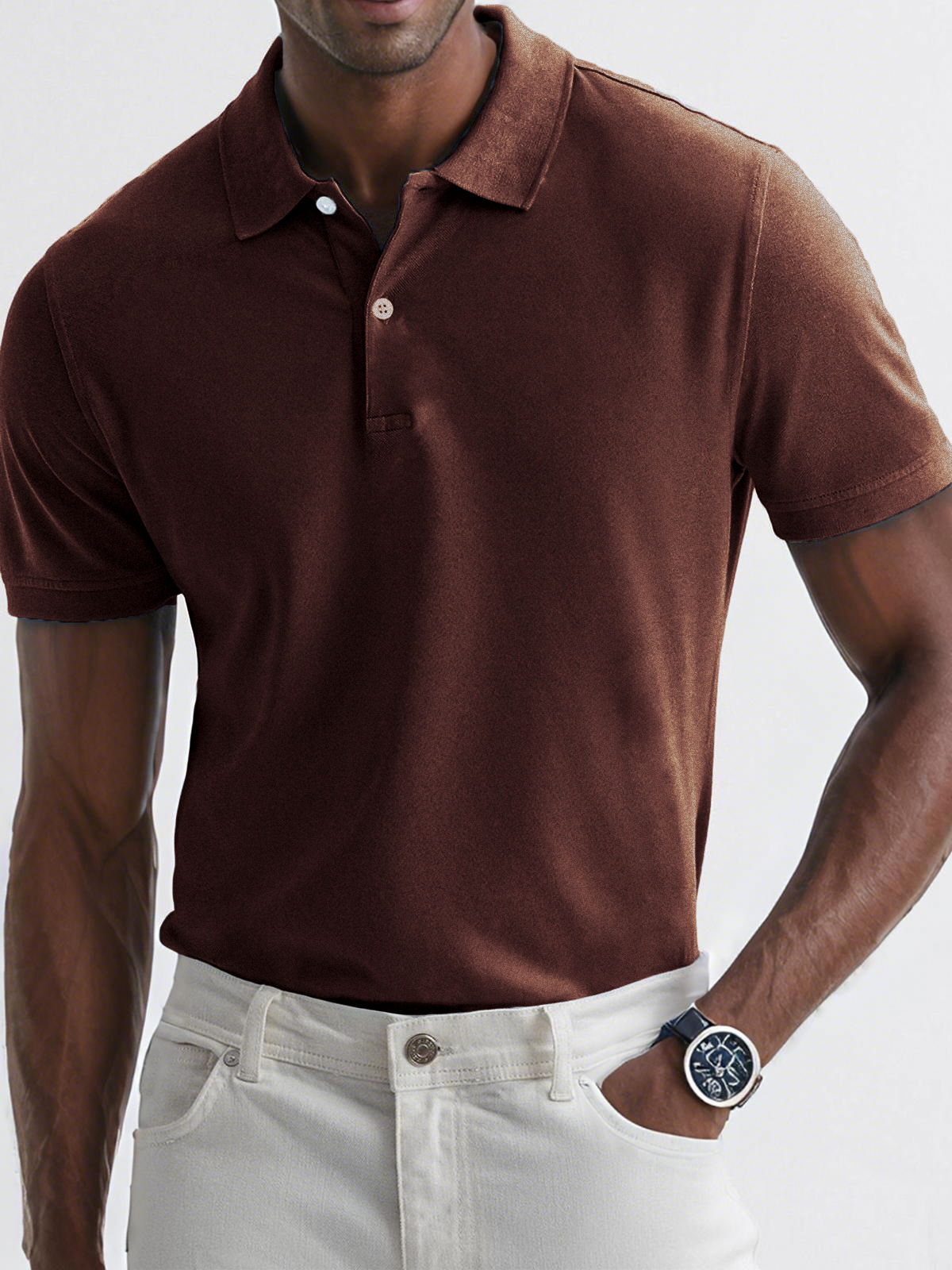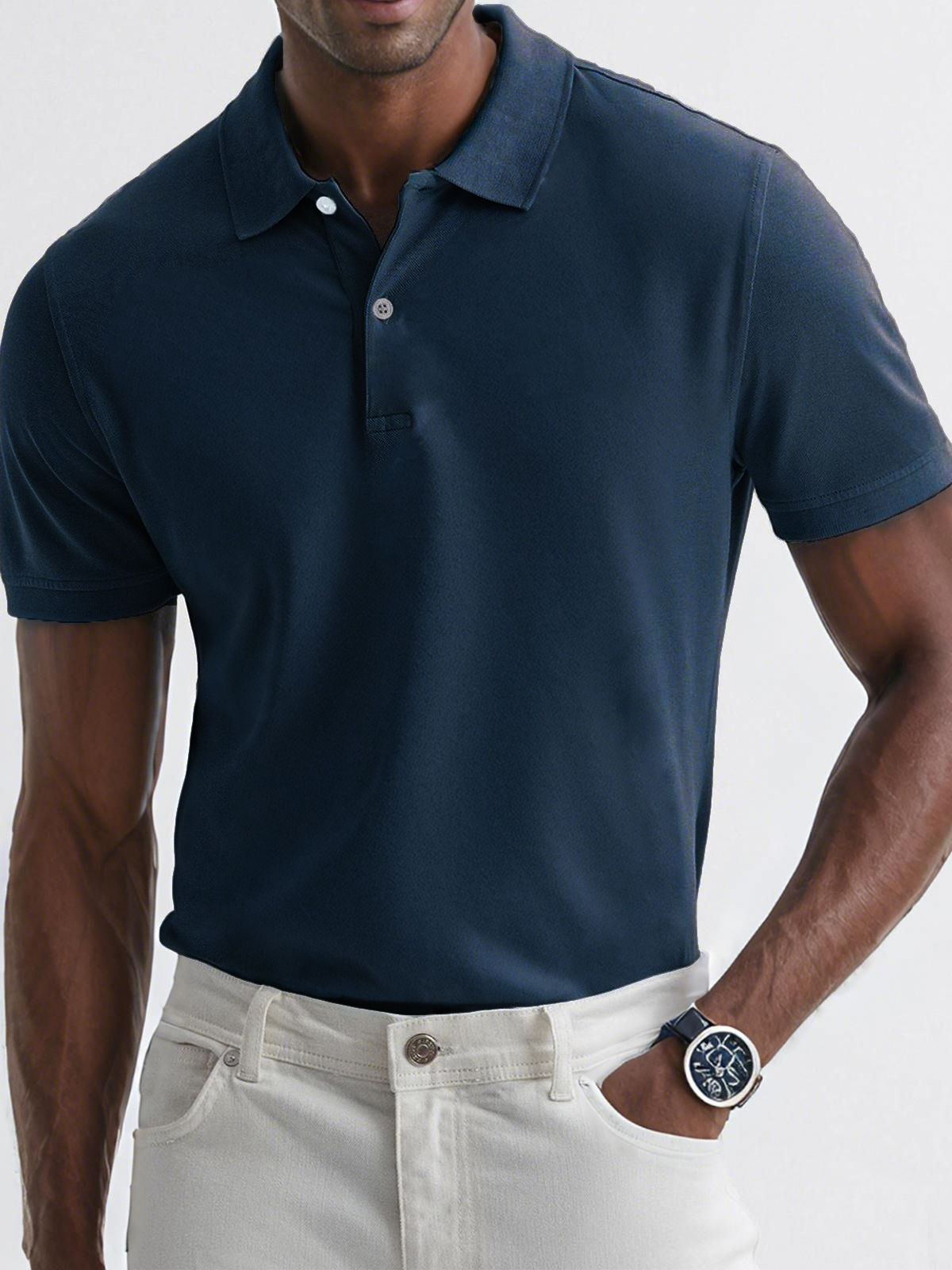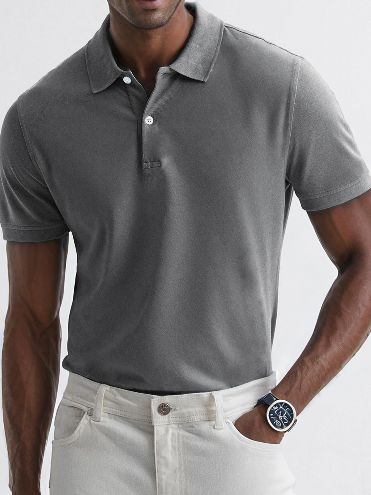 - Neckline:Button polo collar