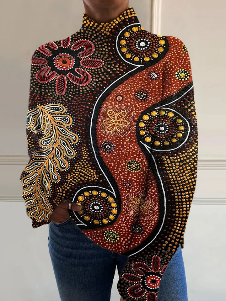 Retro Pattern Art Print Knit Turtleneck Pullover Sweater