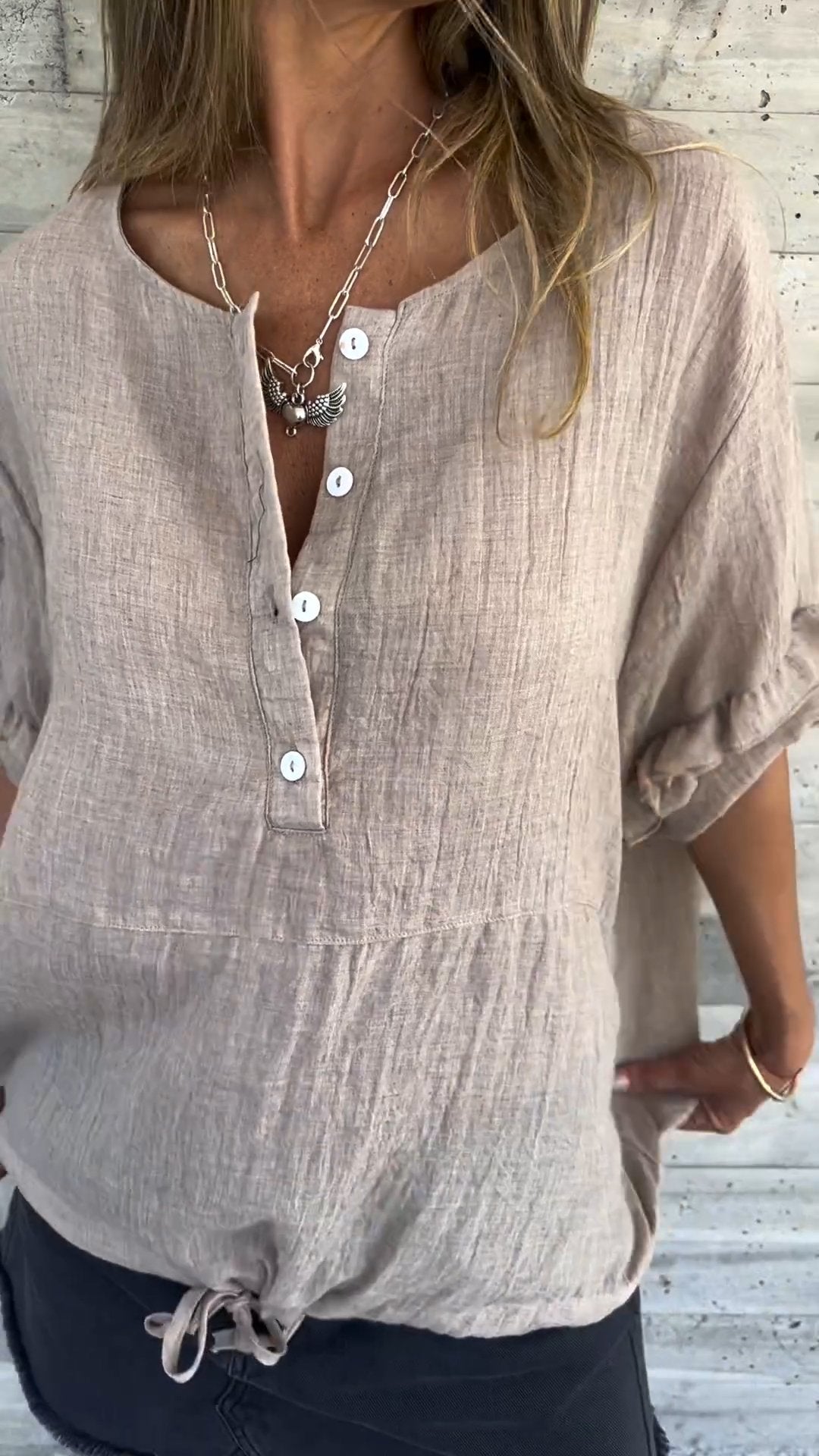 Round Neck Lotus Leaf Half Sleeve Hem Top