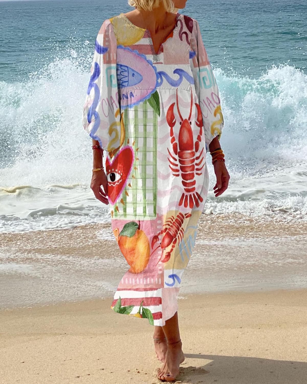 Vacation Food Seafood Art Print V-Neck Loose Dress