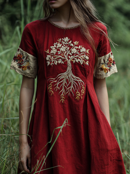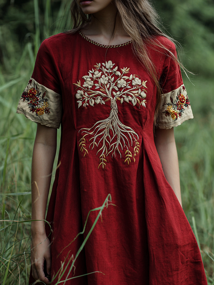 Vintage Viking Life Of Tree Art Linen Maxi Dress