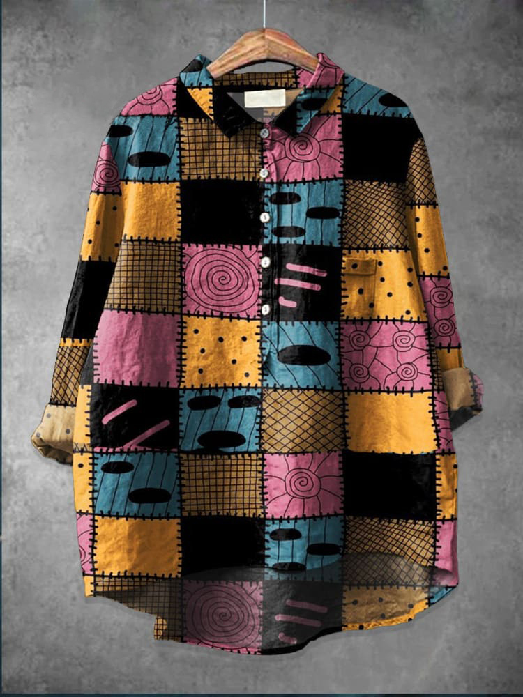 Women's Halloween Art Print Casual Cotton And Linen Shirt