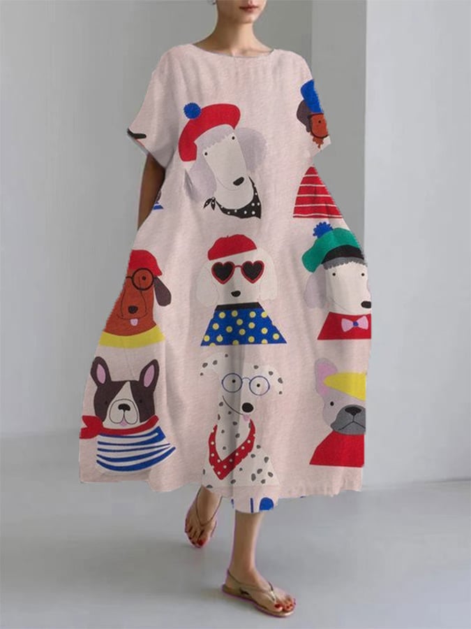 Women‘s Spring And Summer New Fashion Comfortable Loose Casual Dog Print Dress