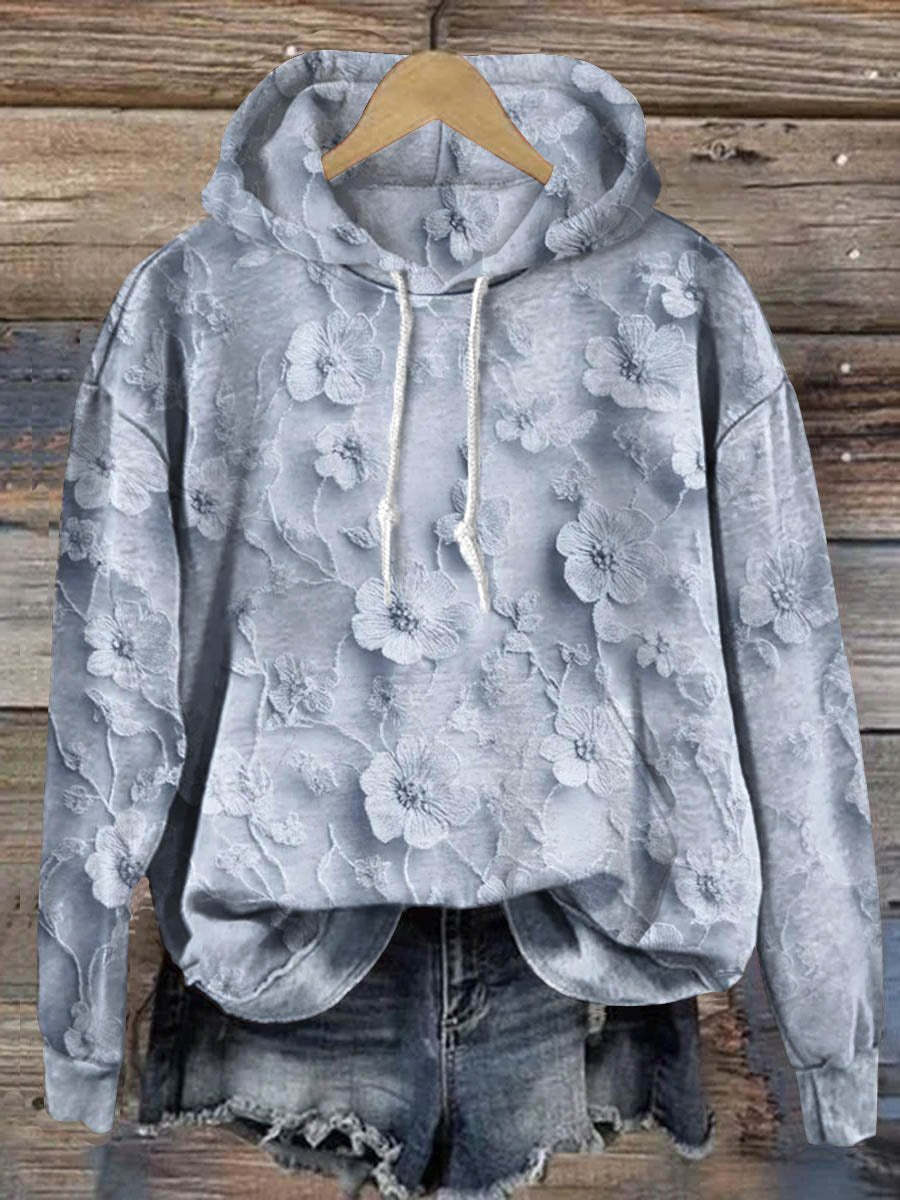 Women's Vintage Lovely Floral Pattern Art Print Casual Hoodie Sweatshirt